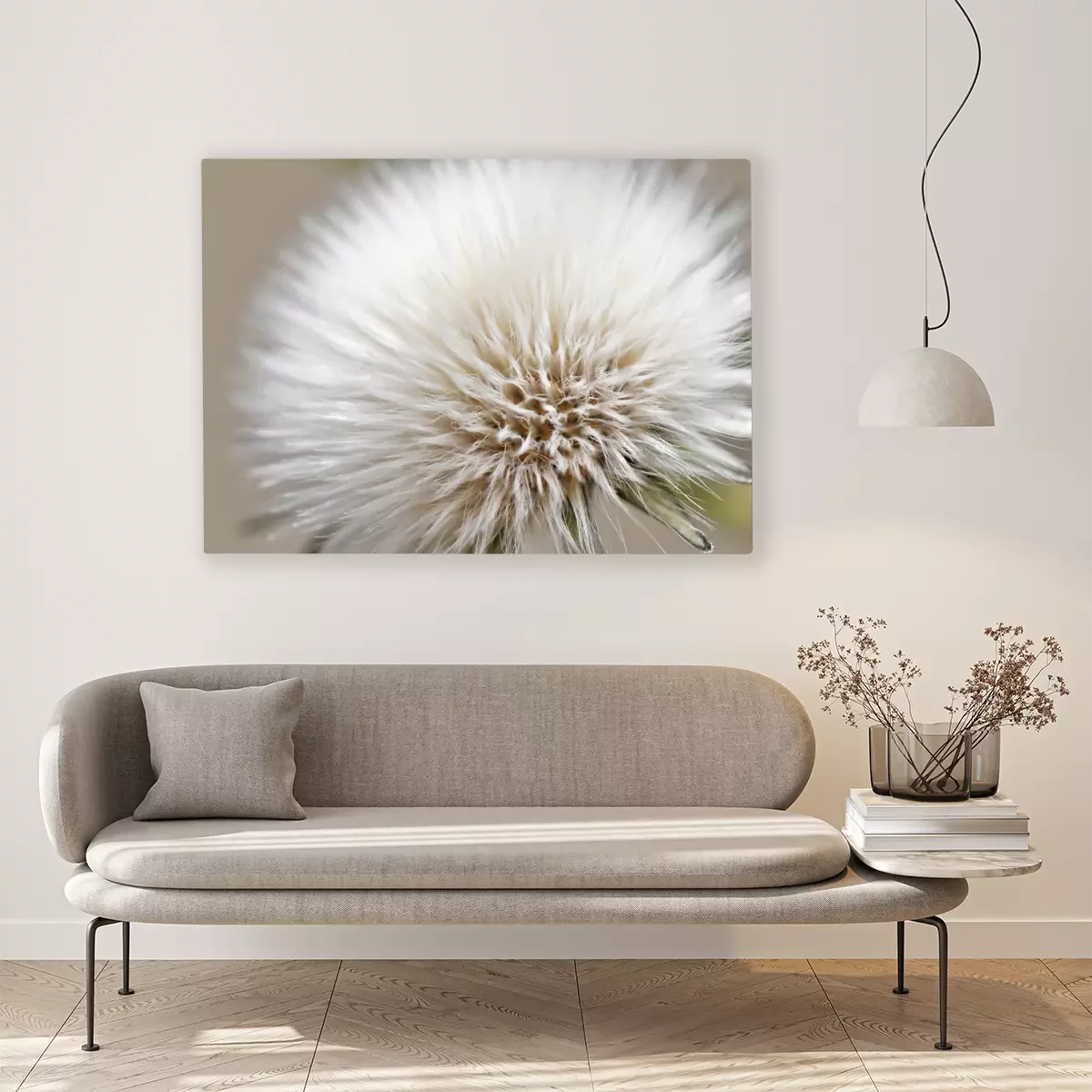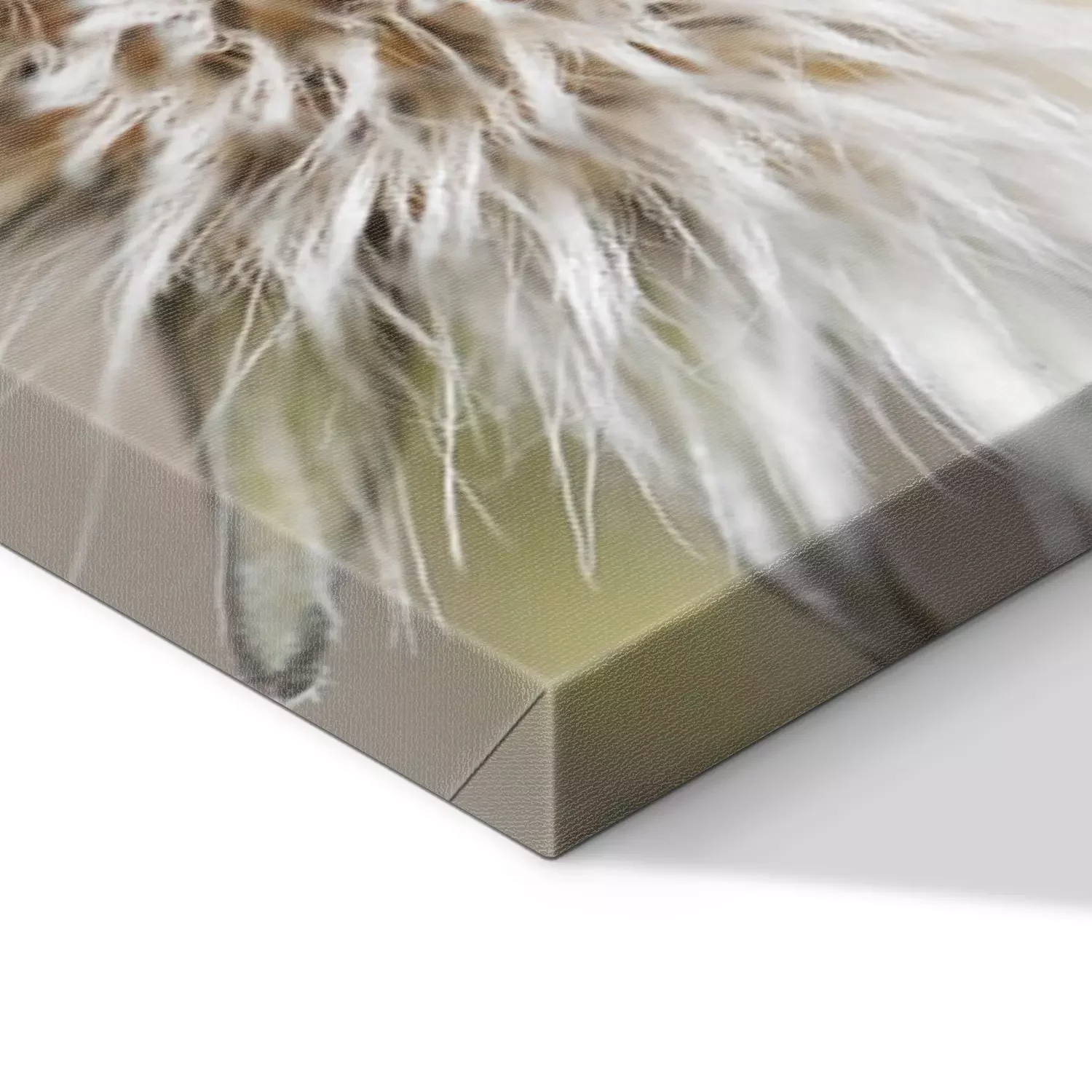 De print wordt aangebracht op hoogwaardig canvas dat op een schildersweefgetouw (spieraam) wordt gespannen. Omdat de print de zijranden bedekt, hoeft het ontwerp niet met een extra kader te worden omlijst. Wij raden ook composities aan die uit meerdere foto's bestaan en zo een coherente compositie vormen.