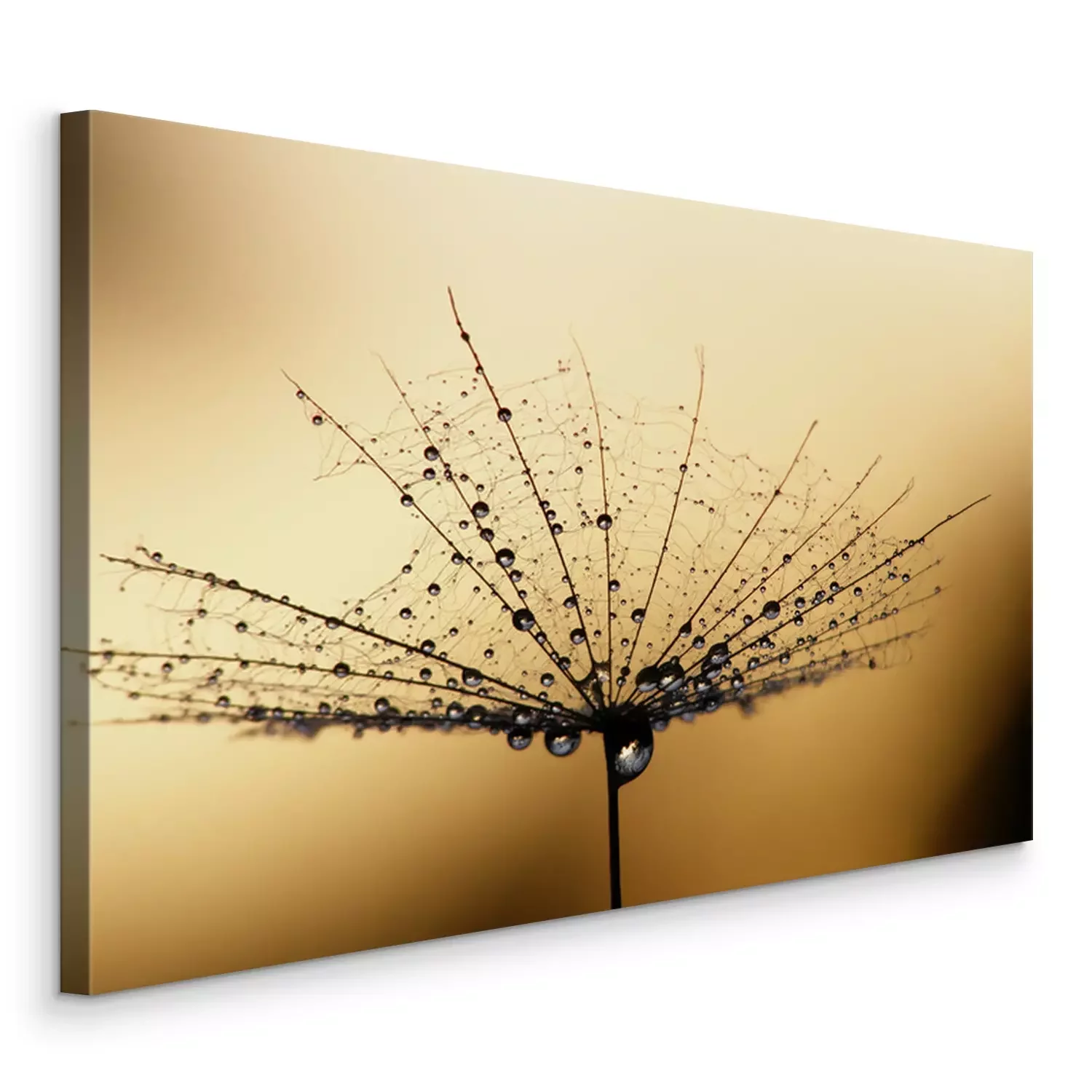 De pluisjes van een paardenbloem zijn bedekt met dauw