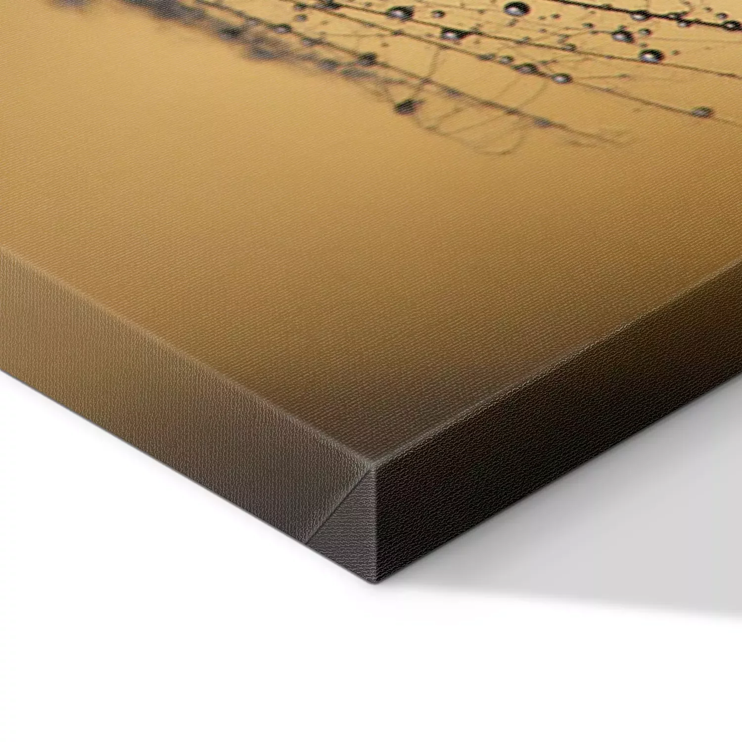 De print wordt aangebracht op hoogwaardig canvas dat op een schildersweefgetouw (spieraam) wordt gespannen. Omdat de print de zijranden bedekt, hoeft het ontwerp niet met een extra kader te worden omlijst. Wij raden ook composities aan die uit meerdere foto's bestaan en zo een coherente compositie vormen.
