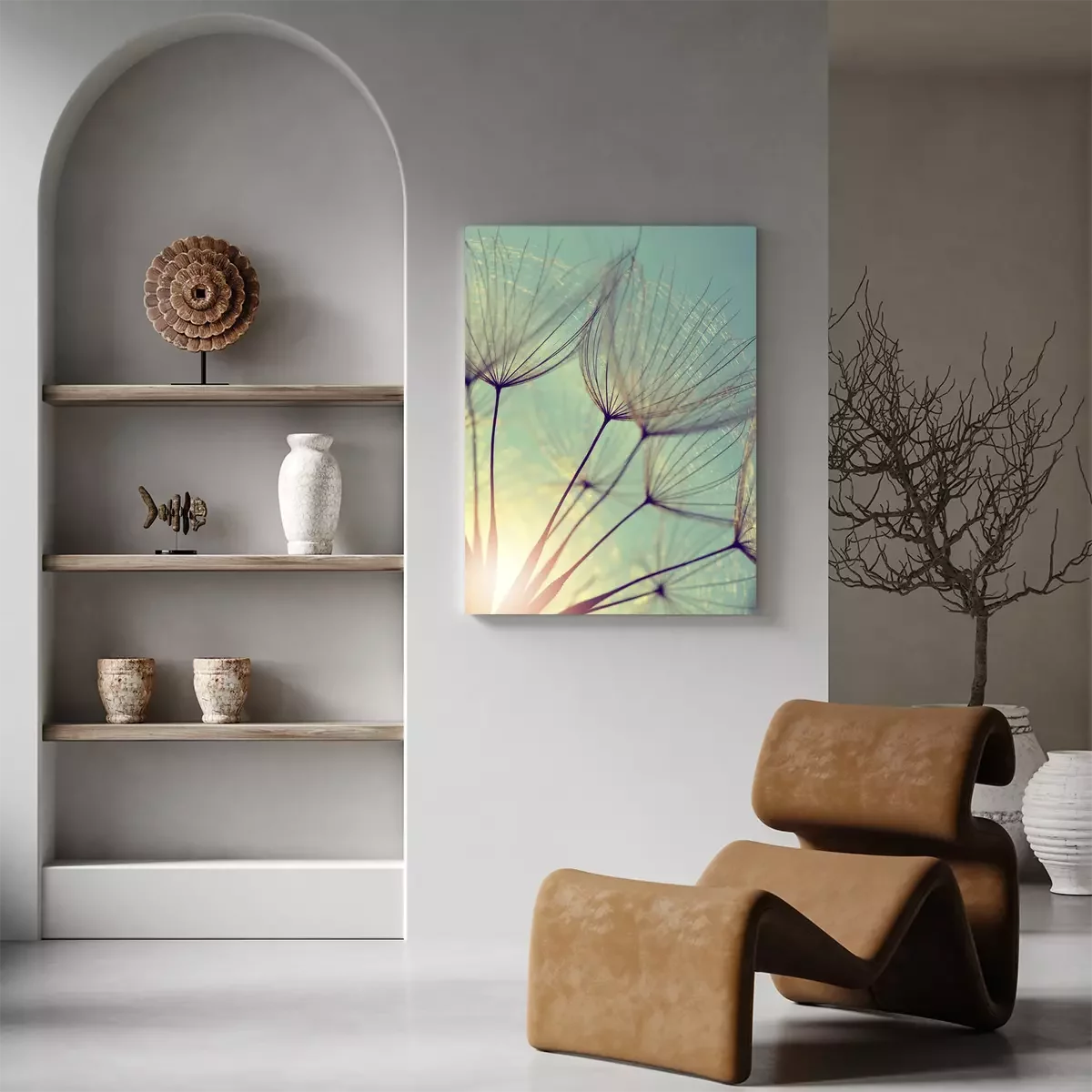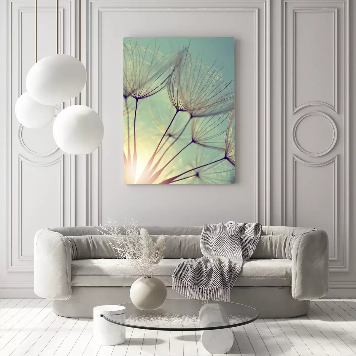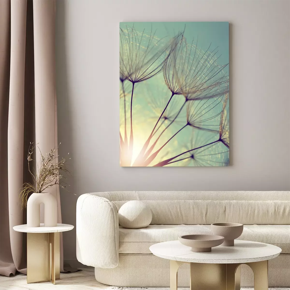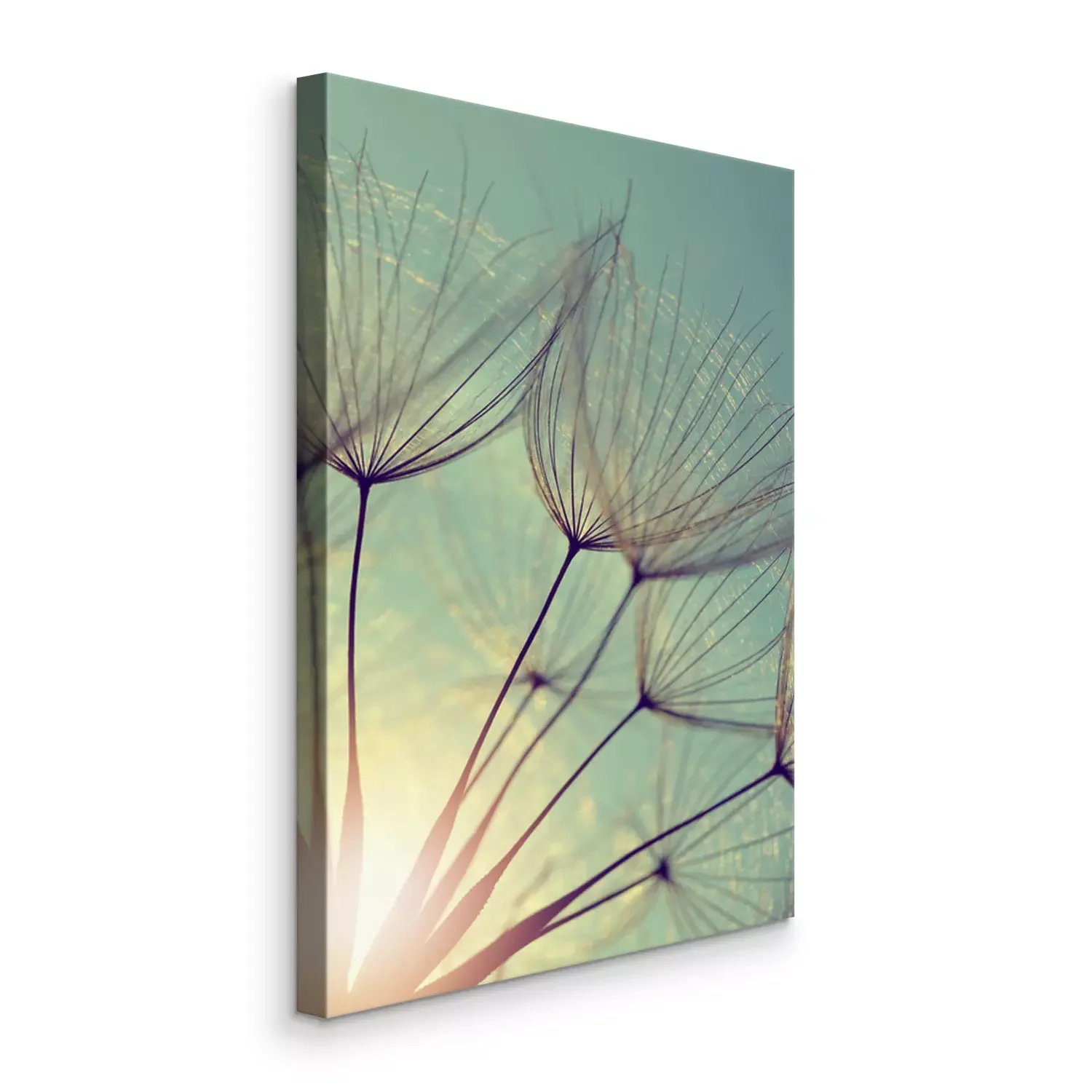 Canvas: Paardebloemen bij zonsondergang