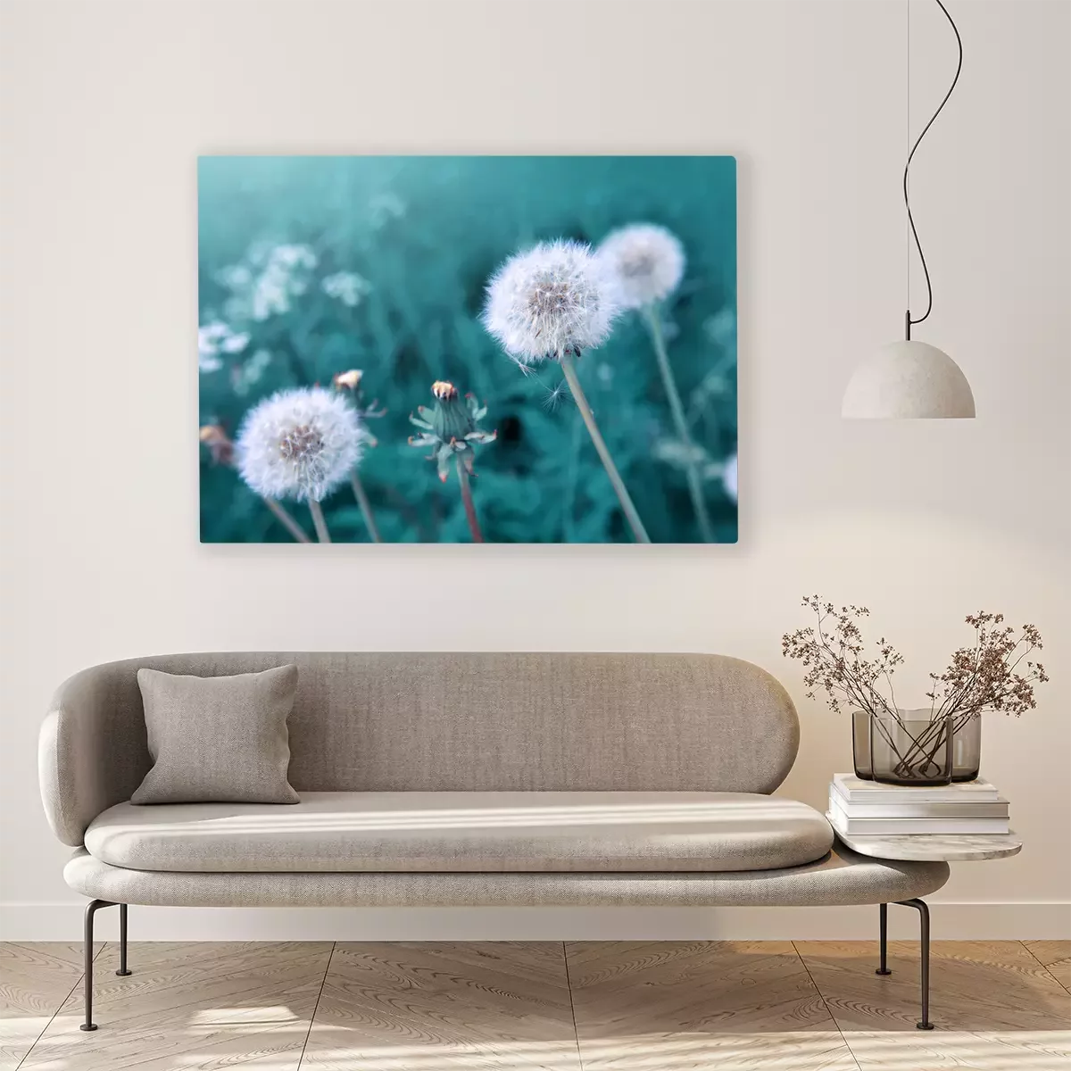 Canvas: Paardebloemen op een groene weide