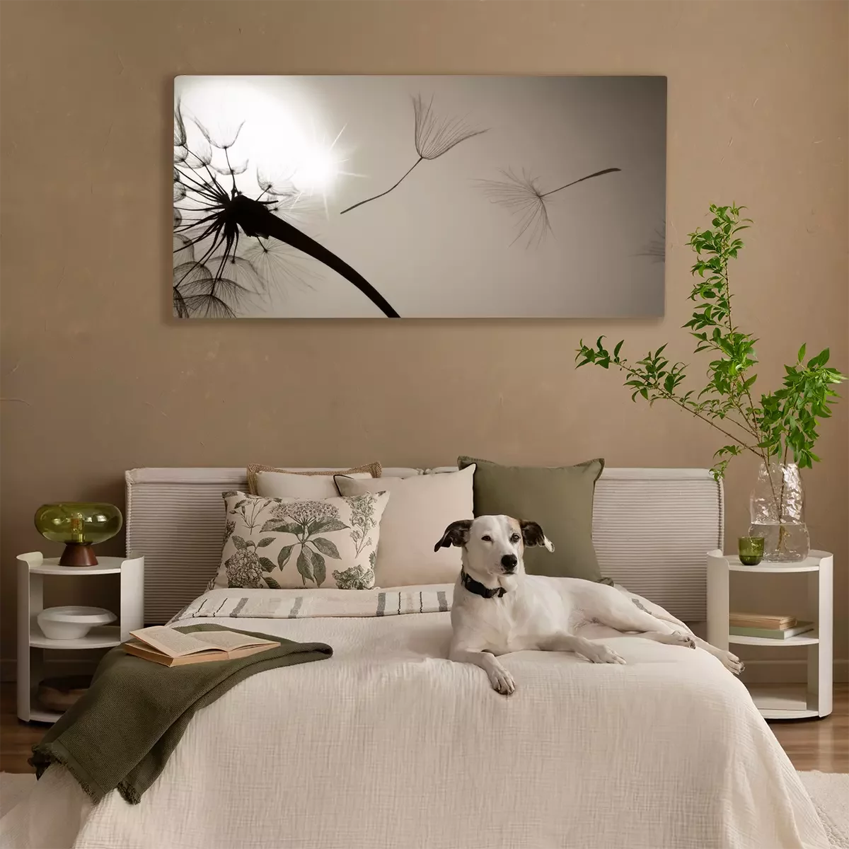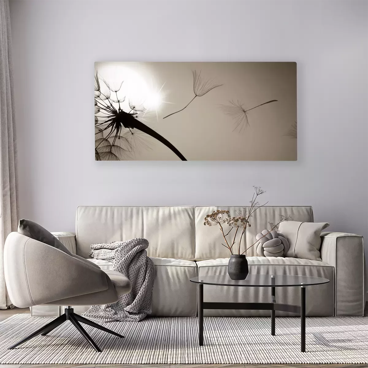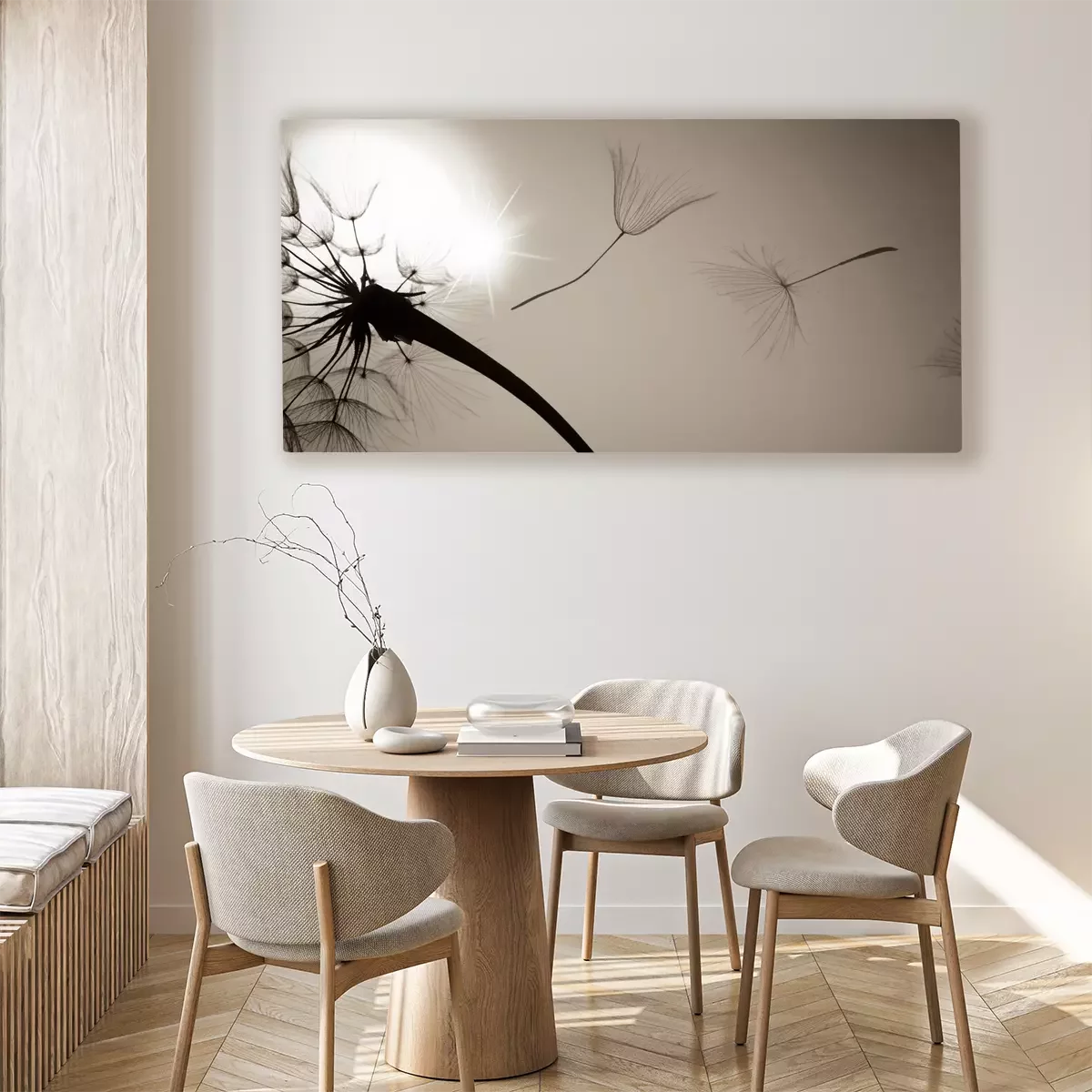 Paardenbloem en zaden tegen de zon in zwart-wit