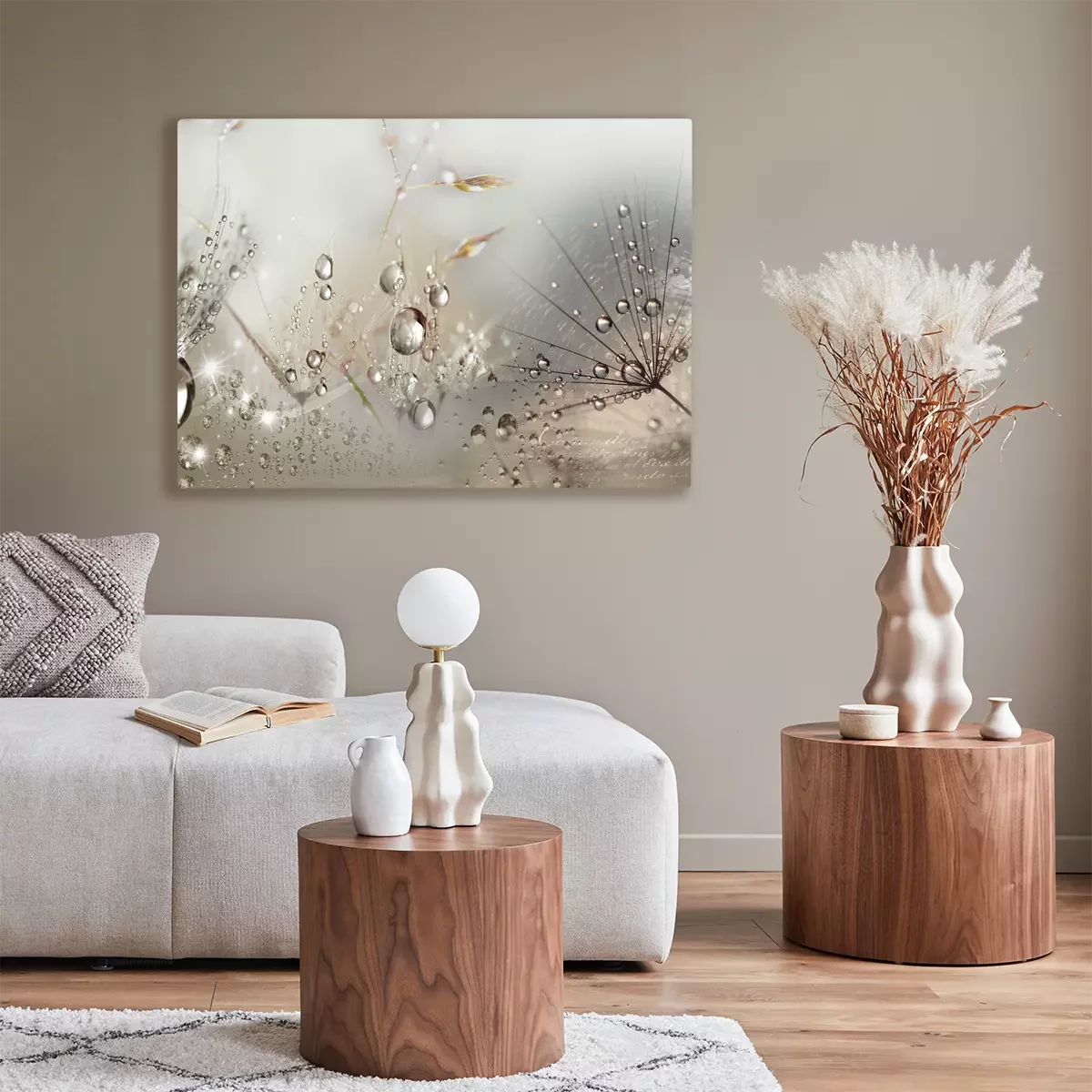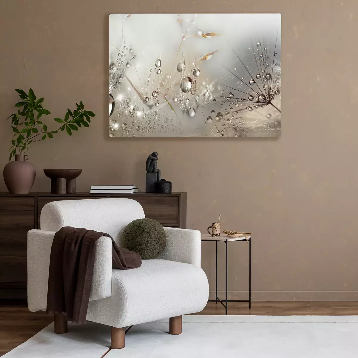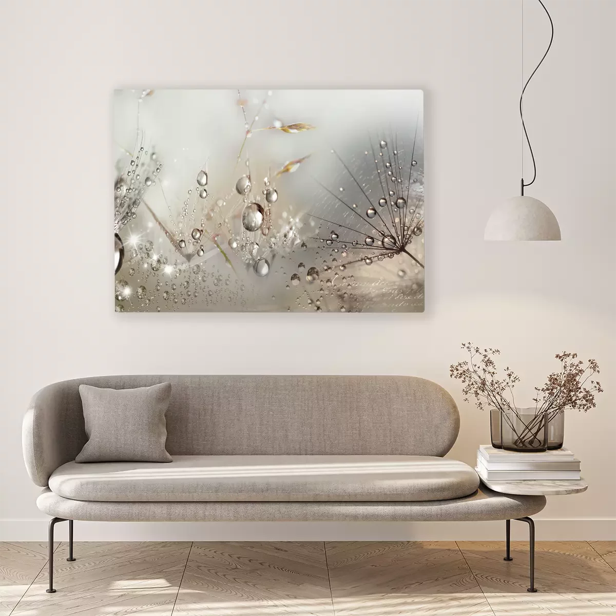 Paardenbloemen met dauwdruppels in een lichtgevende opname