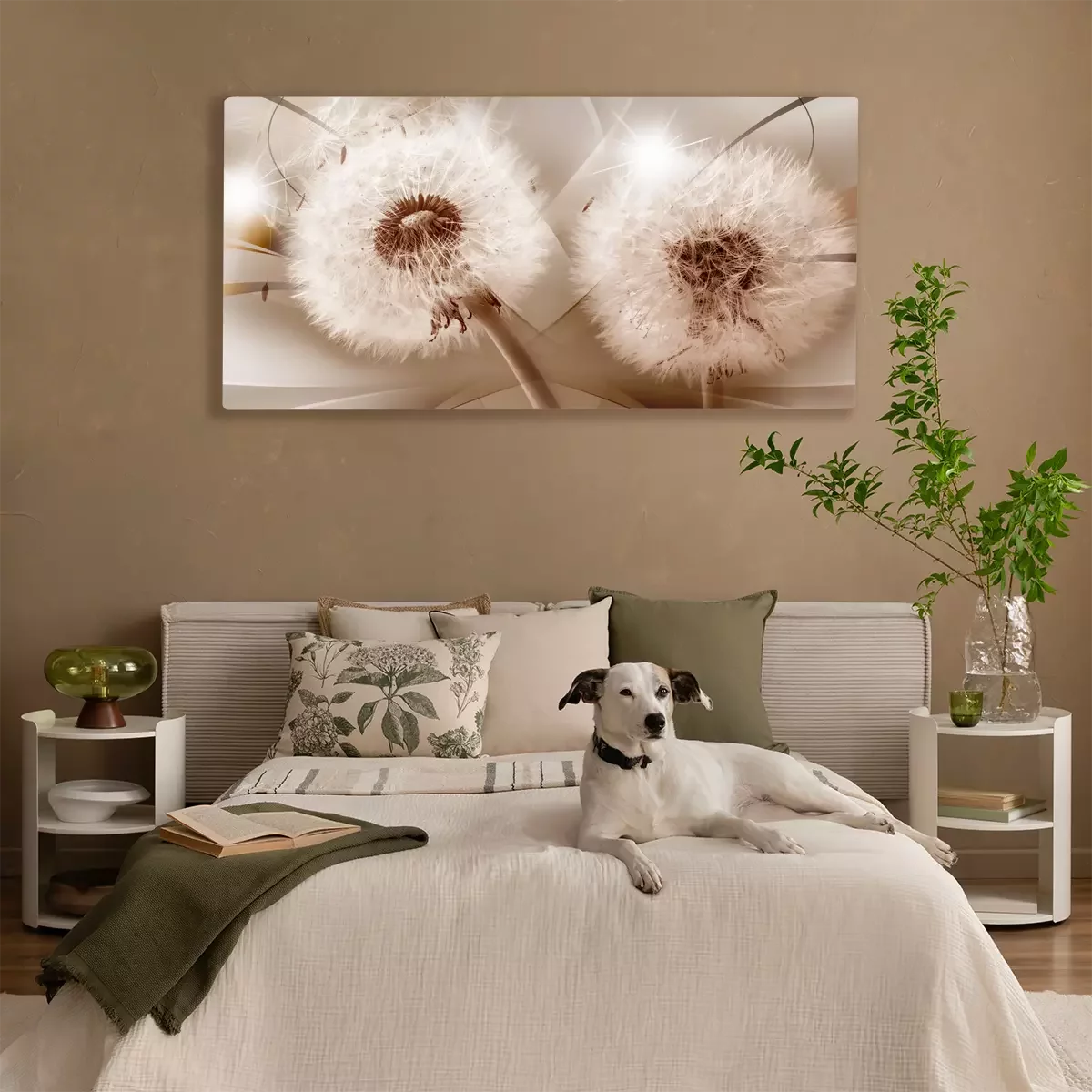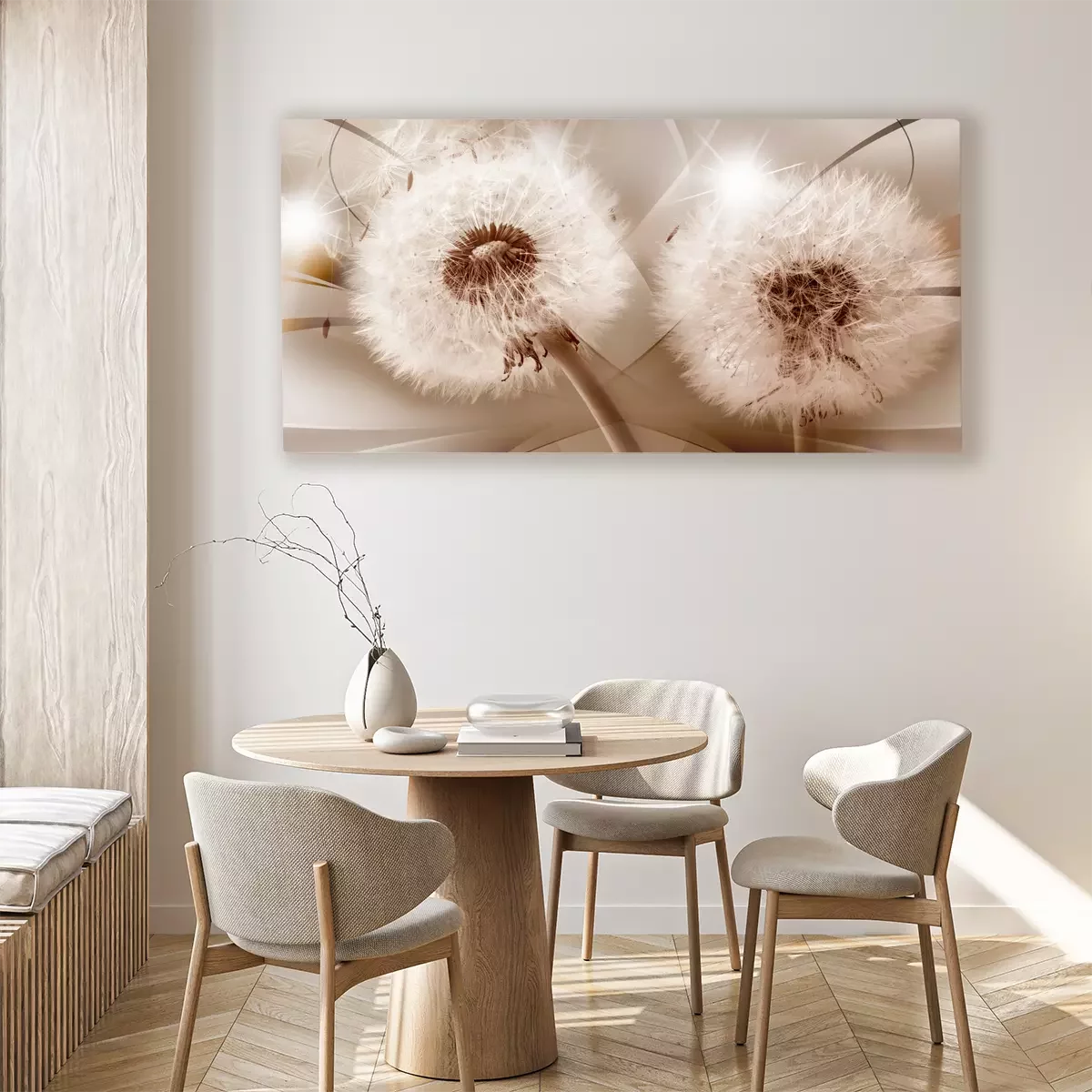 Paardenbloemen op een lichtgevende bruine en crèmekleurige achtergrond