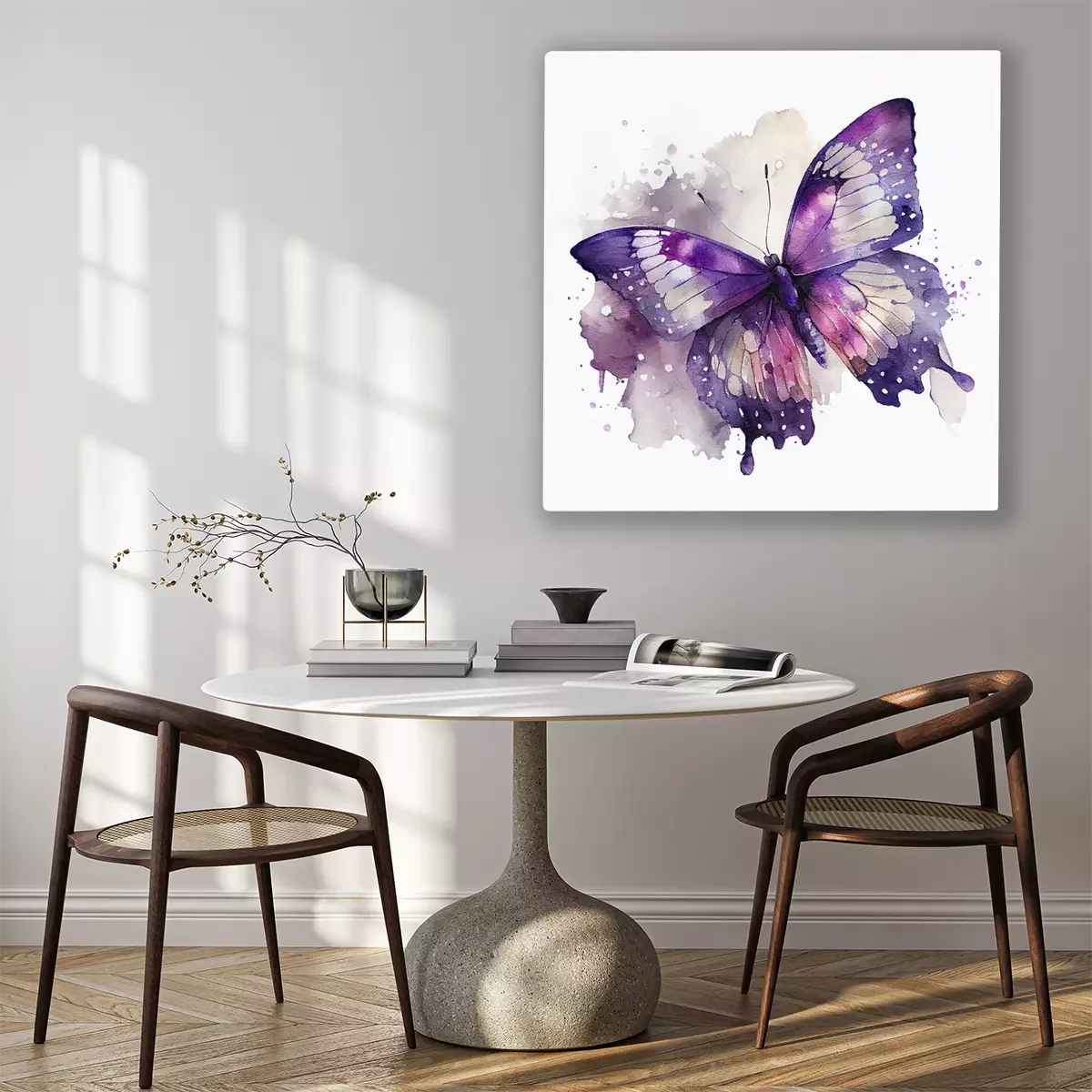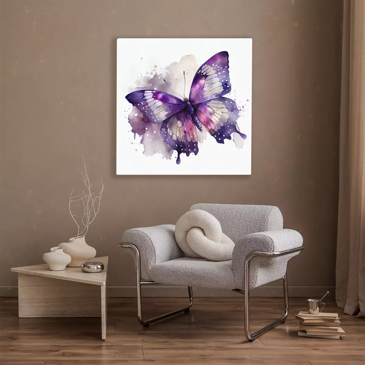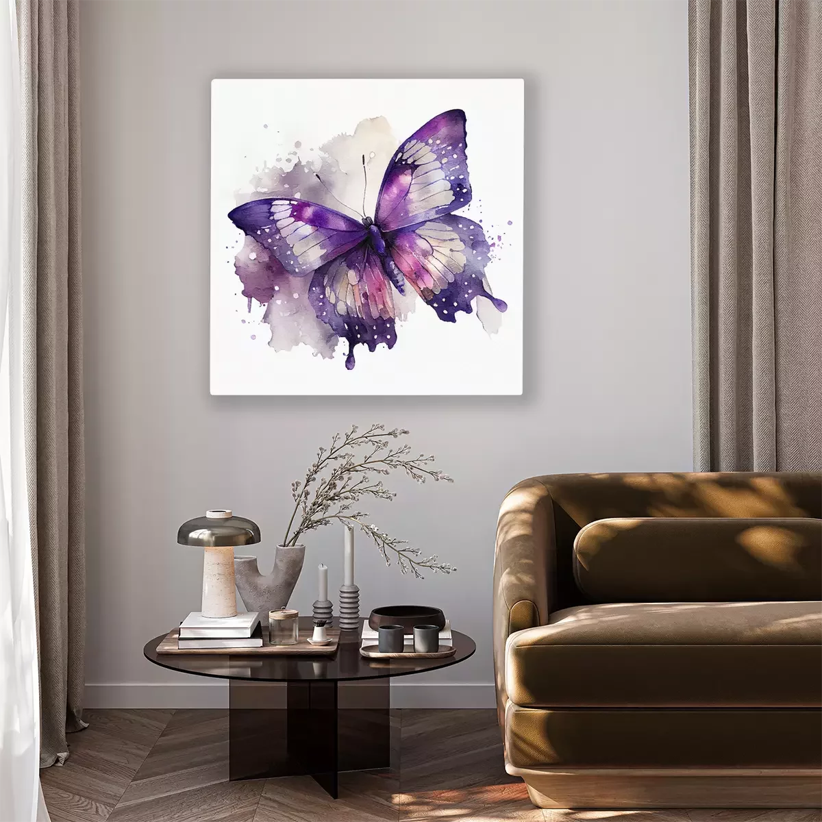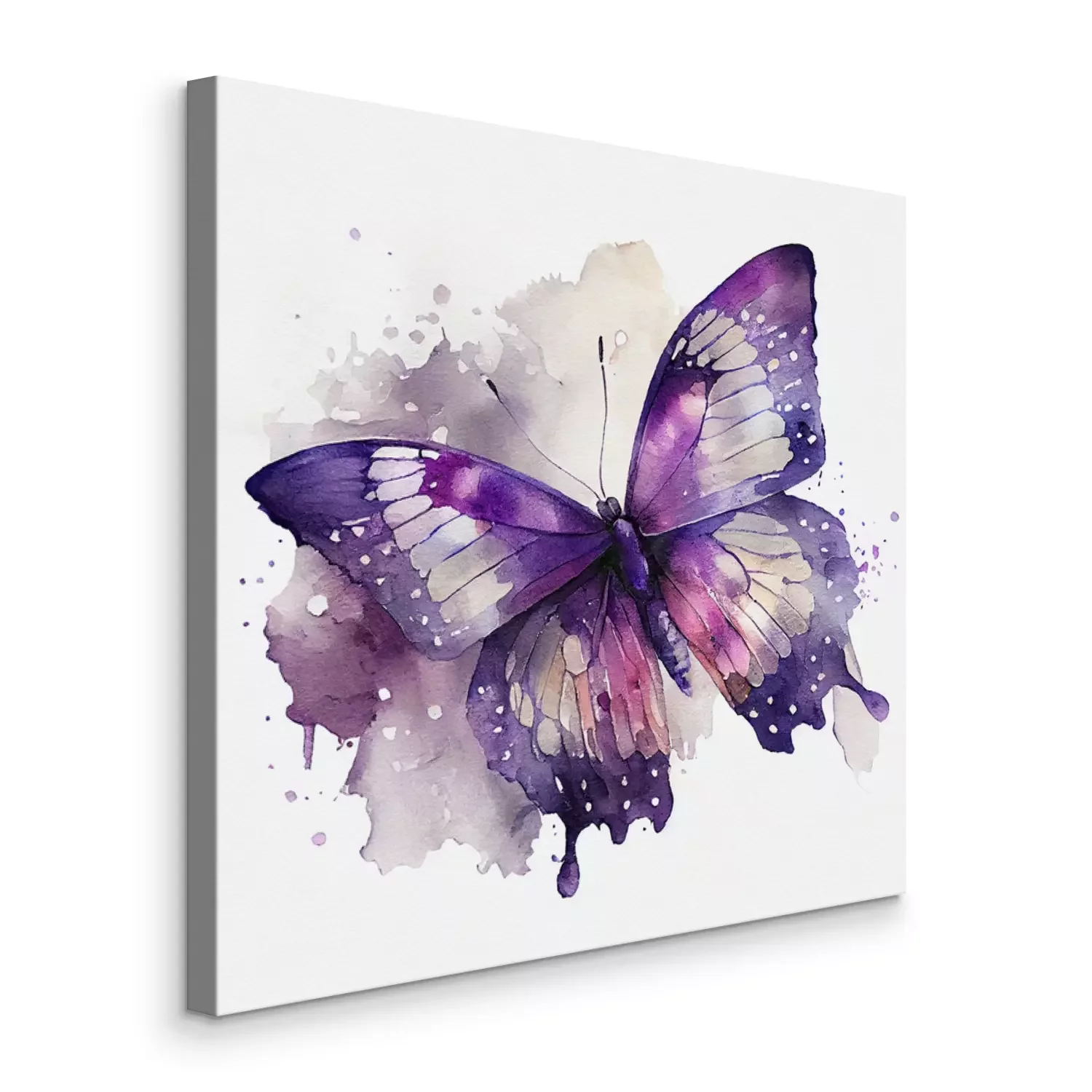 Canvas: Paarse vlinder op een aquarelachtergrond