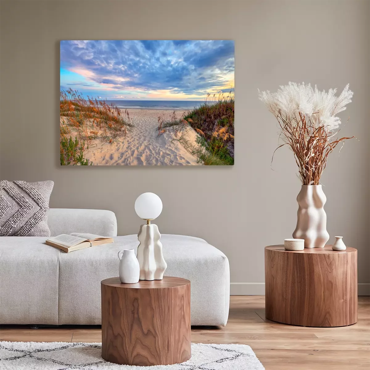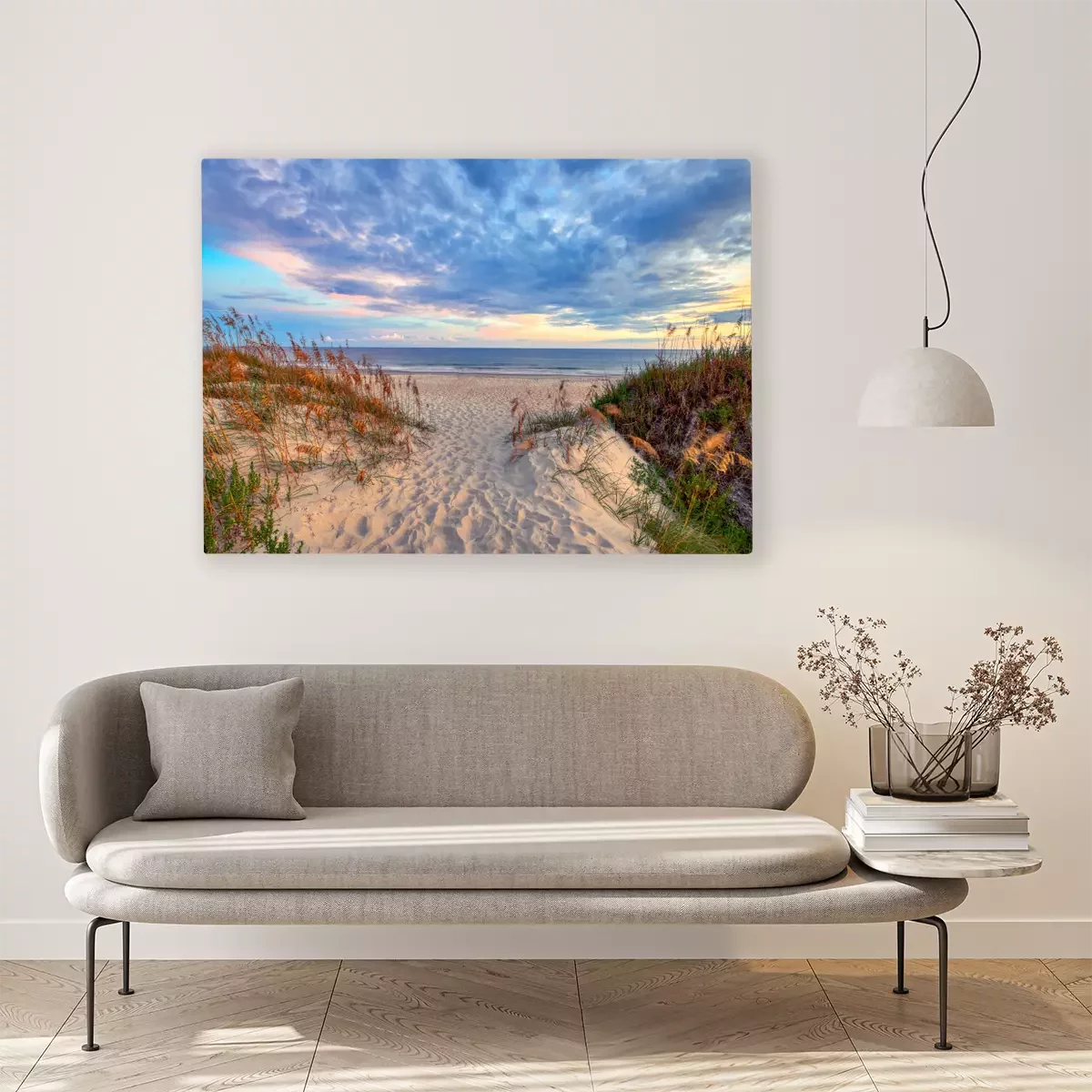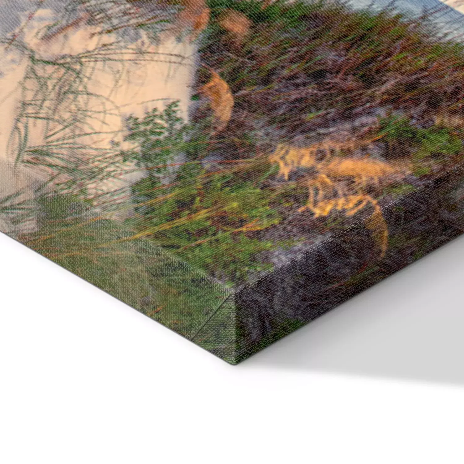 De print wordt aangebracht op hoogwaardig canvas dat op een schildersweefgetouw (spieraam) wordt gespannen. Omdat de print de zijranden bedekt, hoeft het ontwerp niet met een extra kader te worden omlijst. Wij raden ook composities aan die uit meerdere foto's bestaan en zo een coherente compositie vormen.