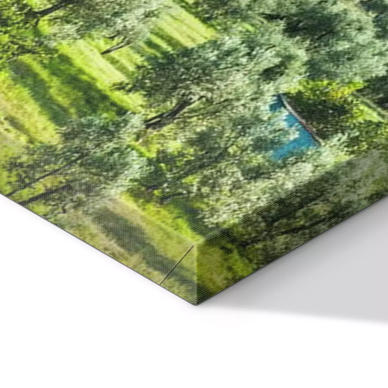 De print wordt aangebracht op hoogwaardig canvas dat op een schildersweefgetouw (spieraam) wordt gespannen. Omdat de print de zijranden bedekt, hoeft het ontwerp niet met een extra kader te worden omlijst. Wij raden ook composities aan die uit meerdere foto's bestaan en zo een coherente compositie vormen.