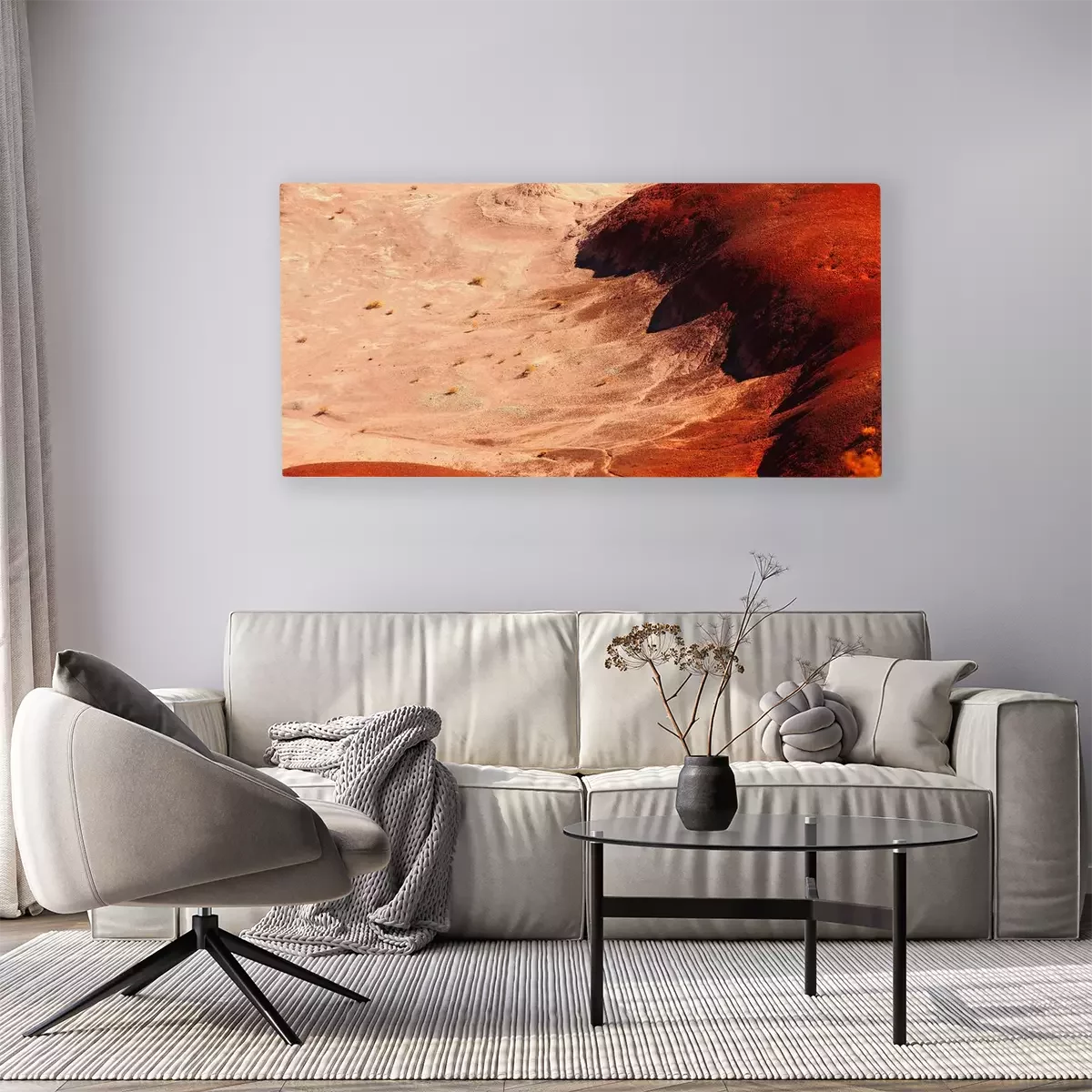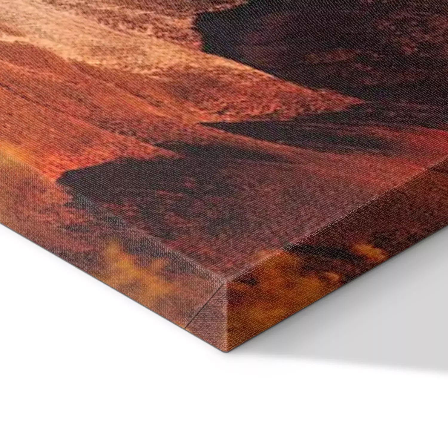 De print wordt aangebracht op hoogwaardig canvas dat op een schildersweefgetouw (spieraam) wordt gespannen. Omdat de print de zijranden bedekt, hoeft het ontwerp niet met een extra kader te worden omlijst. Wij raden ook composities aan die uit meerdere foto's bestaan en zo een coherente compositie vormen.