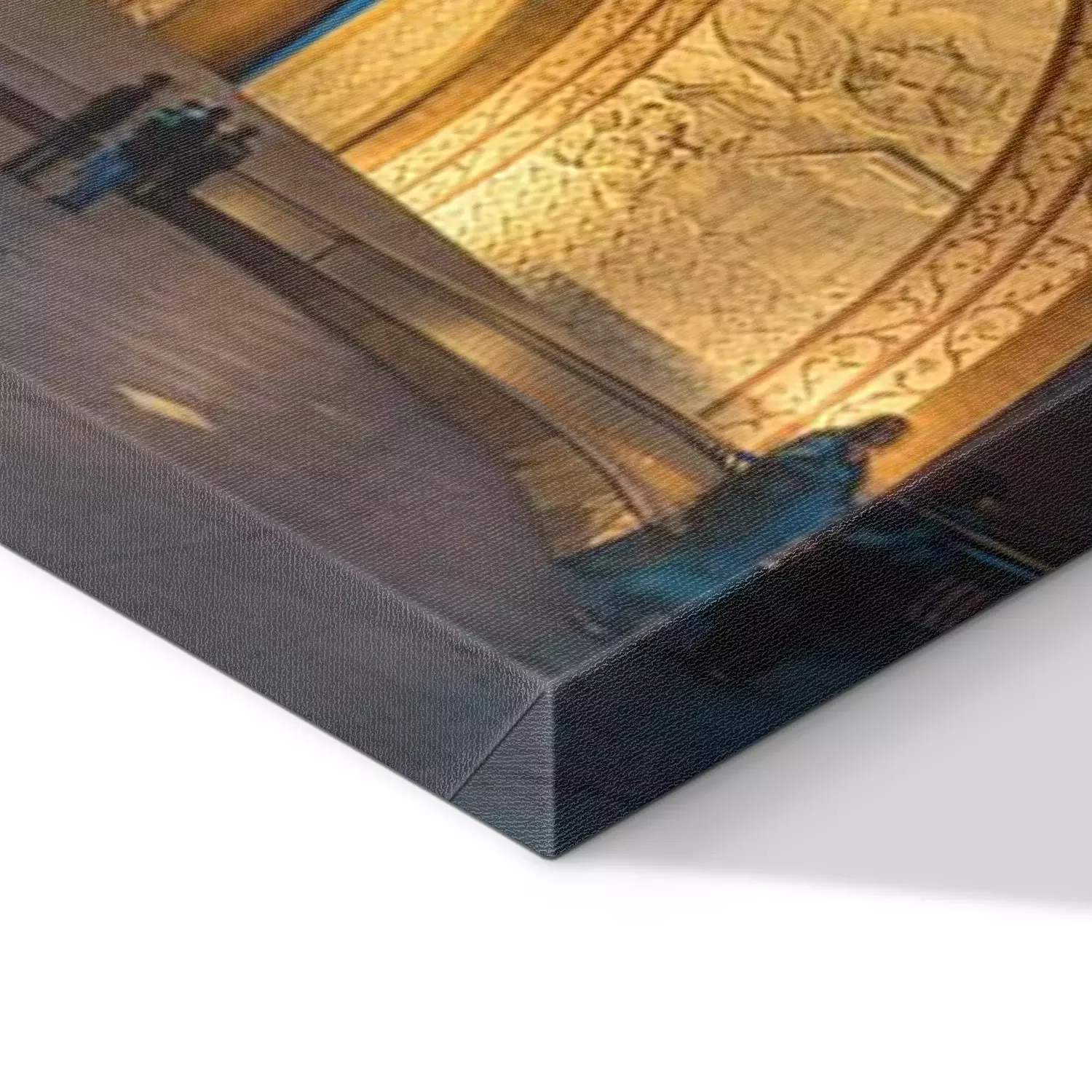 De print wordt aangebracht op hoogwaardig canvas dat op een schildersweefgetouw (spieraam) wordt gespannen. Omdat de print de zijranden bedekt, hoeft het ontwerp niet met een extra kader te worden omlijst. Wij raden ook composities aan die uit meerdere foto's bestaan en zo een coherente compositie vormen.