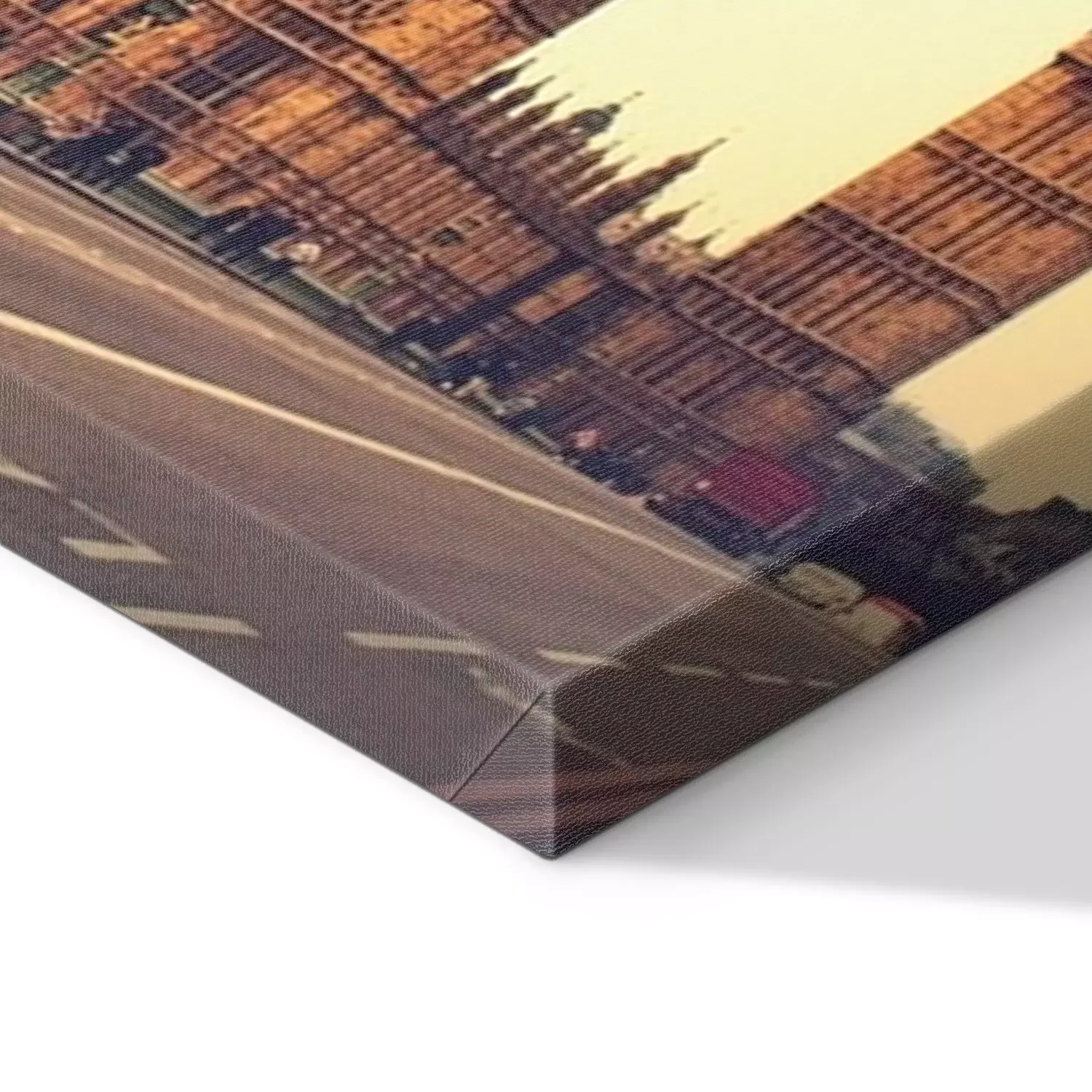 De print wordt aangebracht op hoogwaardig canvas dat op een schildersweefgetouw (spieraam) wordt gespannen. Omdat de print de zijranden bedekt, hoeft het ontwerp niet met een extra kader te worden omlijst. Wij raden ook composities aan die uit meerdere foto's bestaan en zo een coherente compositie vormen.