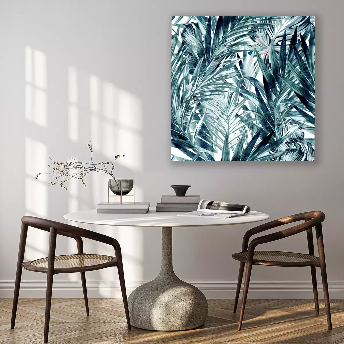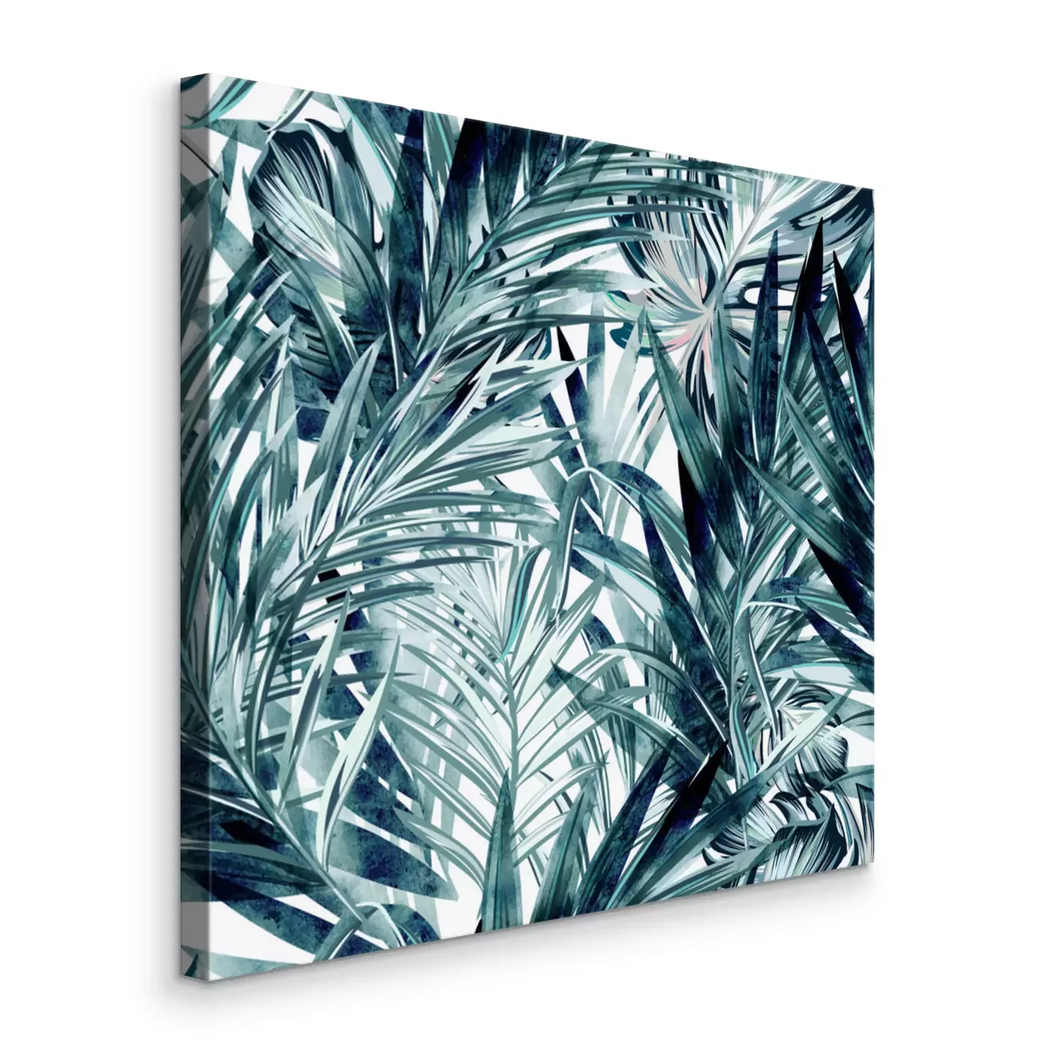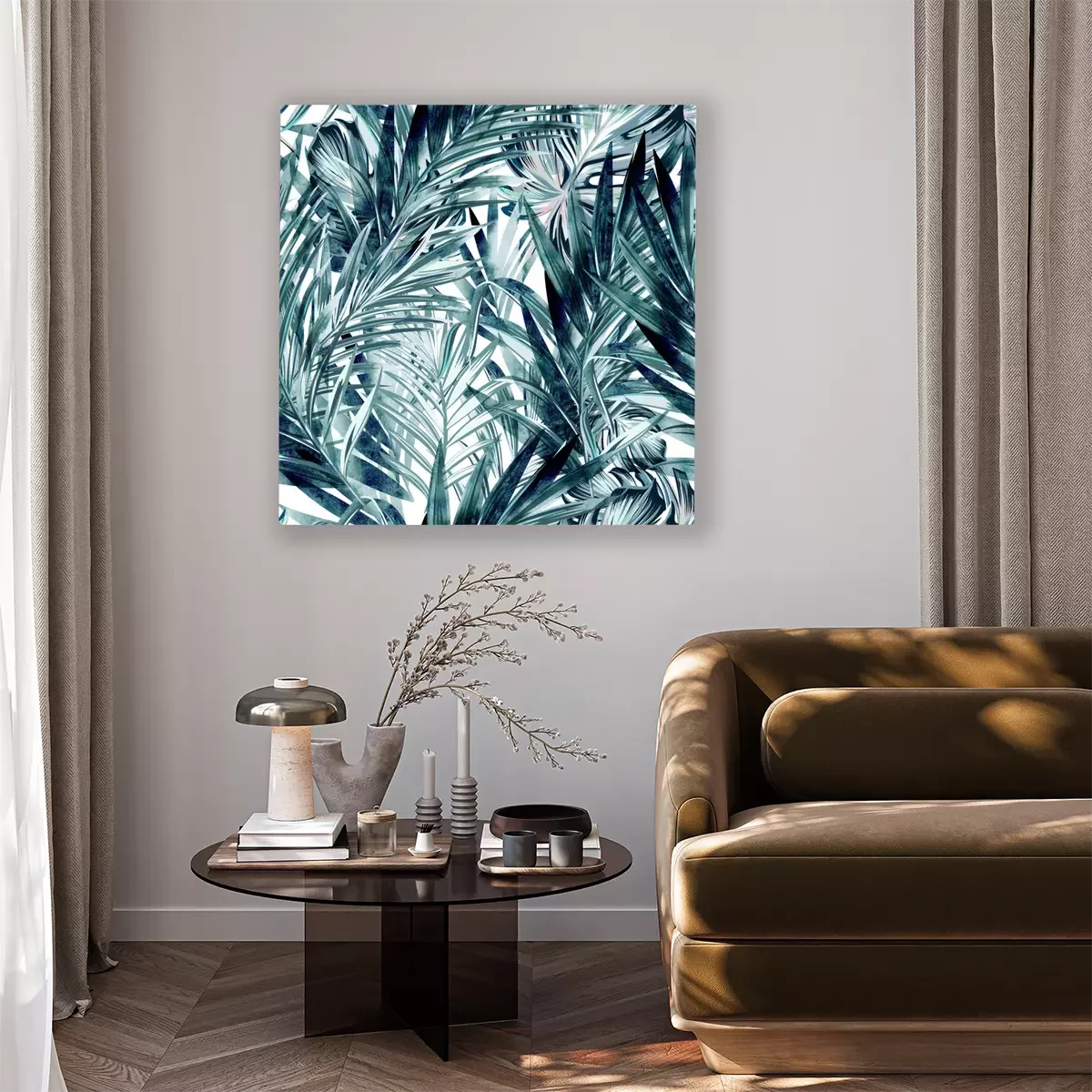 Canvas: Palmbladeren geschilderd in aquarel op witte achtergrond