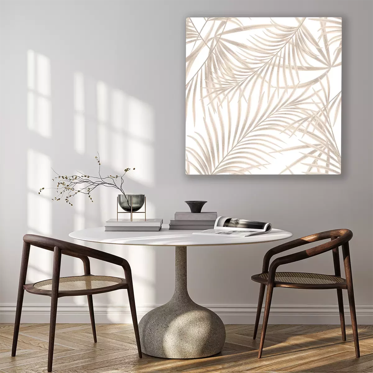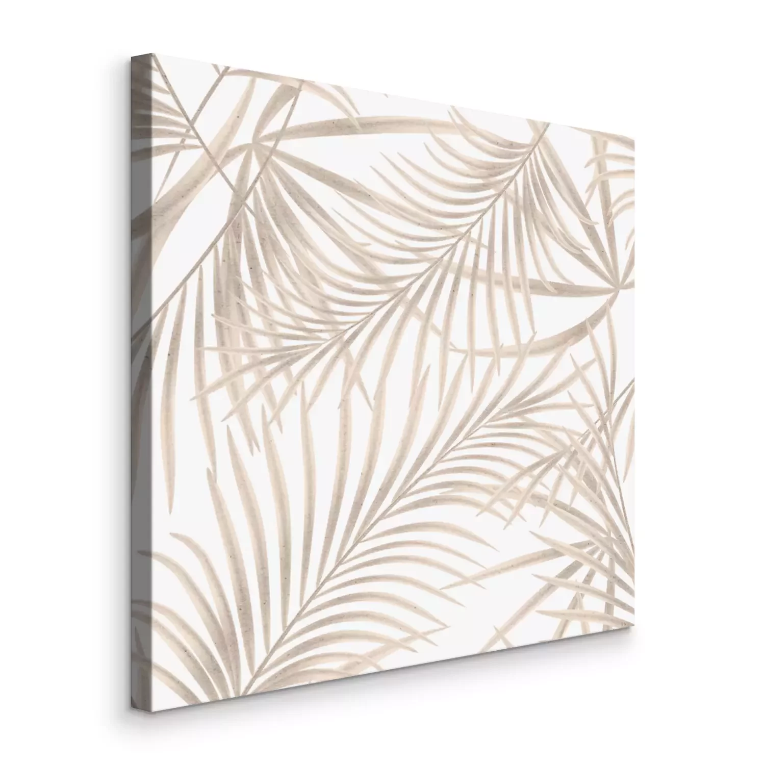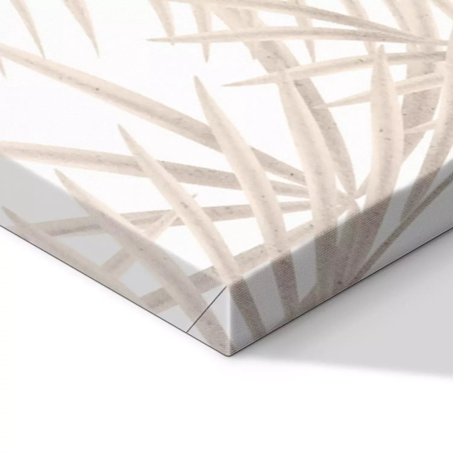 Canvas: Palmbladeren in beige tinten op witte achtergrond