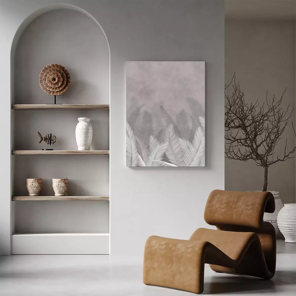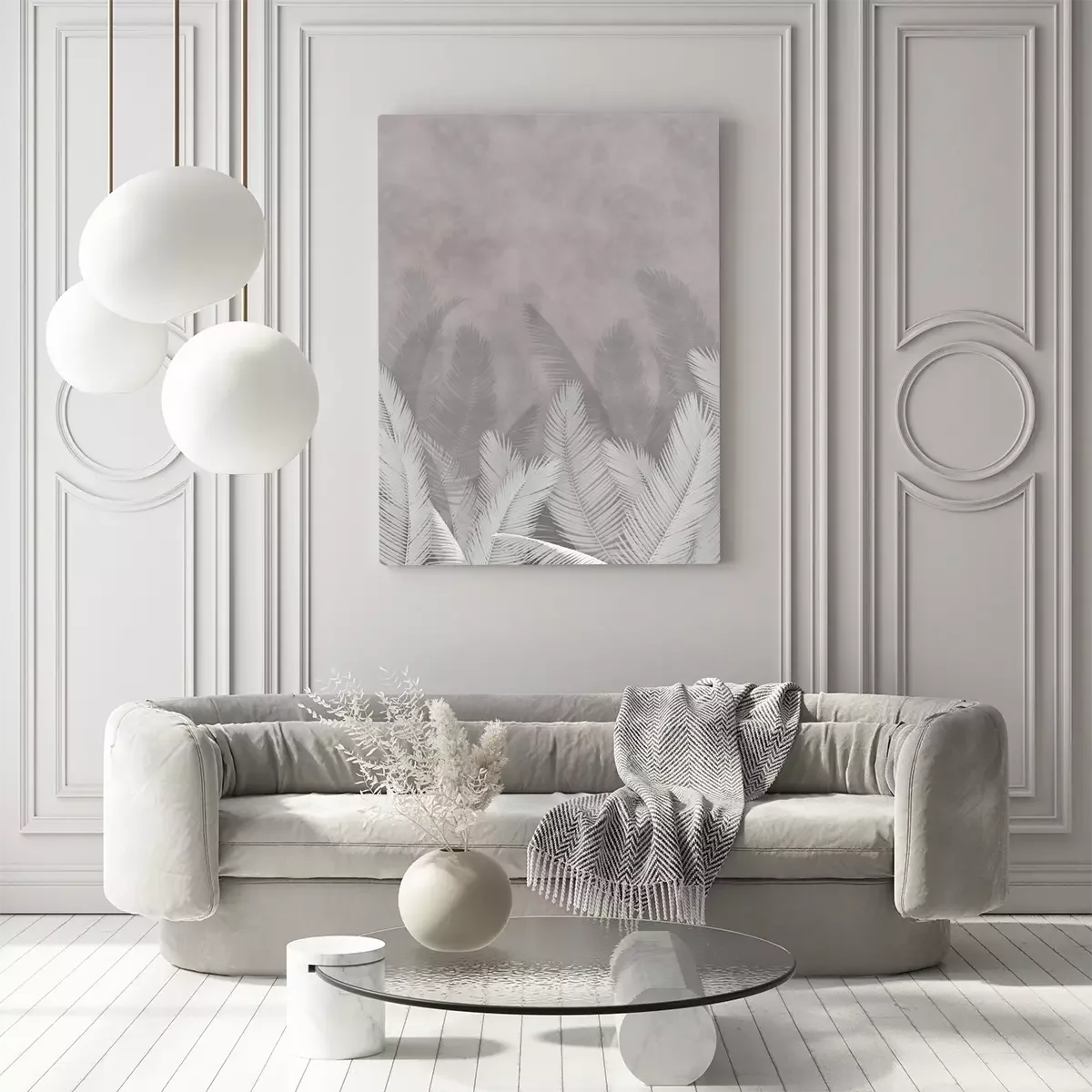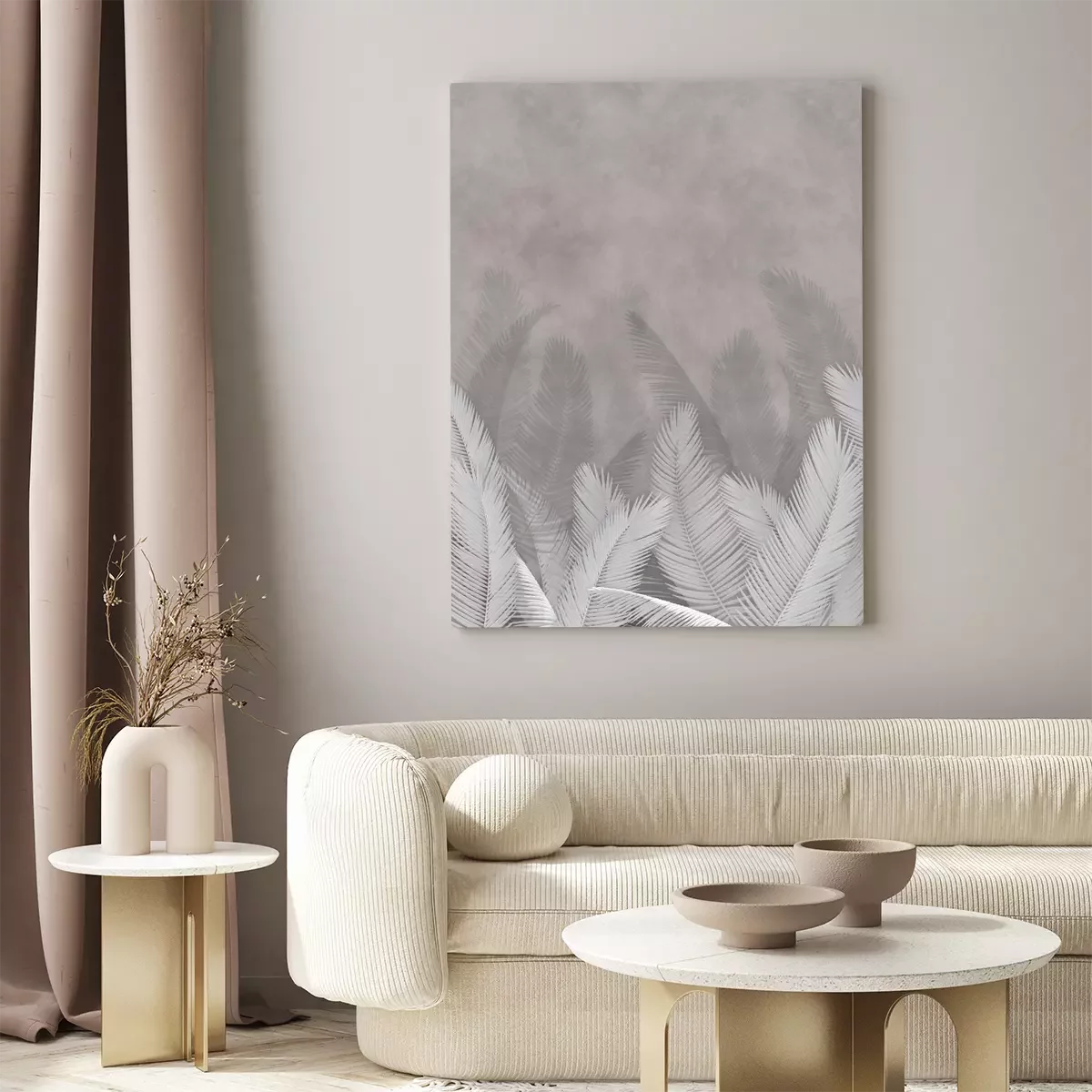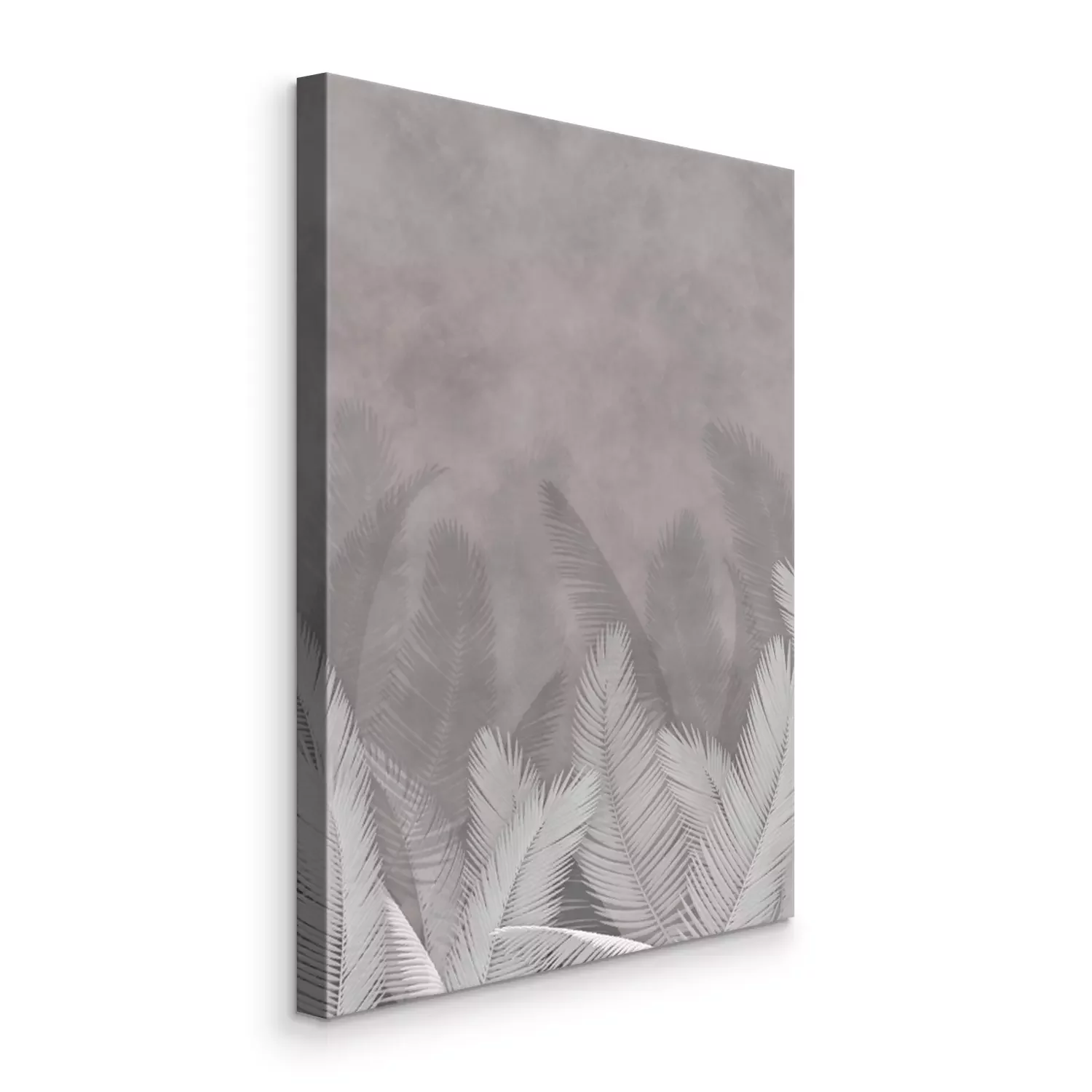 Canvas: Palmbladeren op betonnen achtergrond in grijstinten