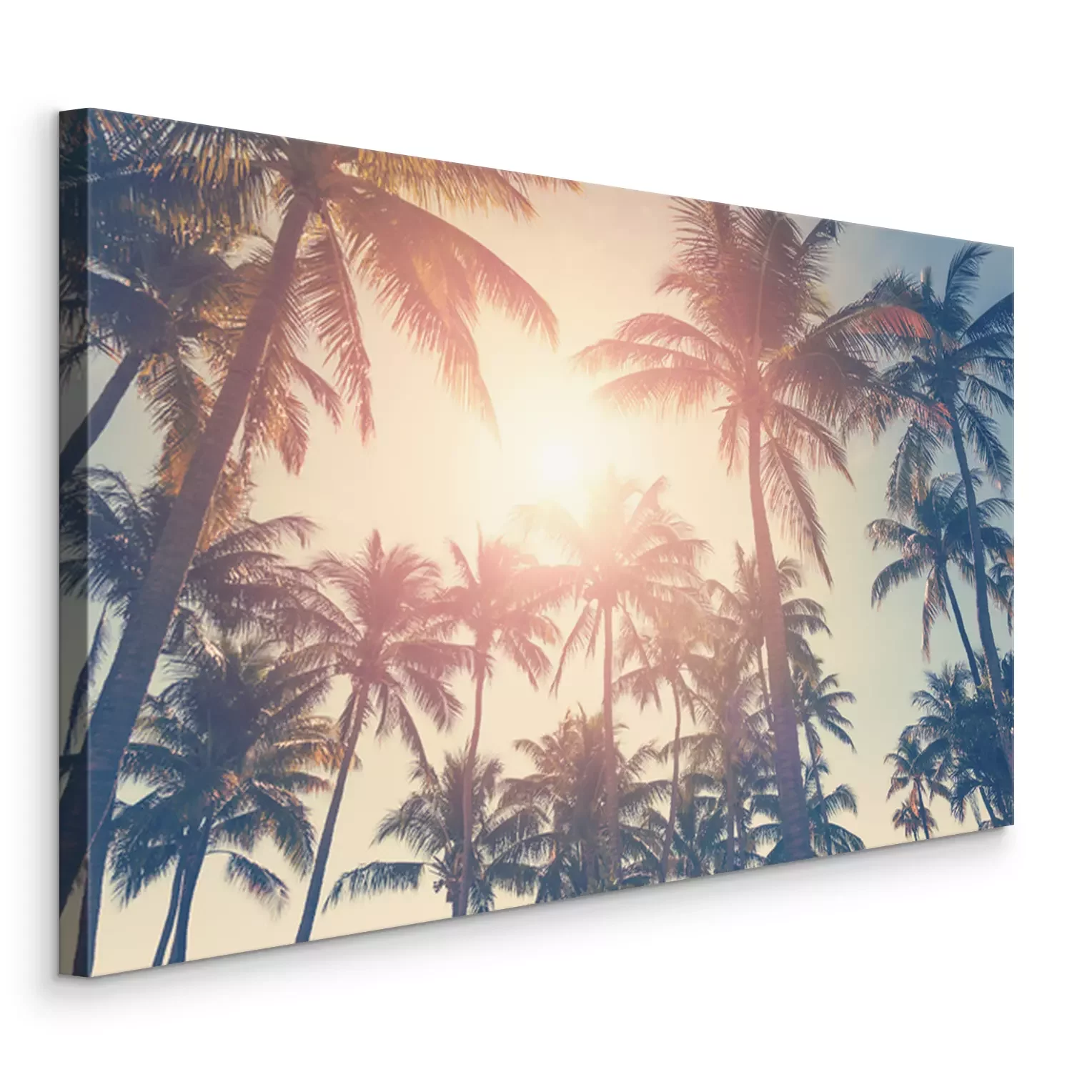 Canvas: Palmbladeren tegen de achtergrond van de zon