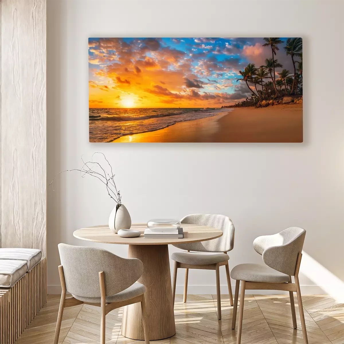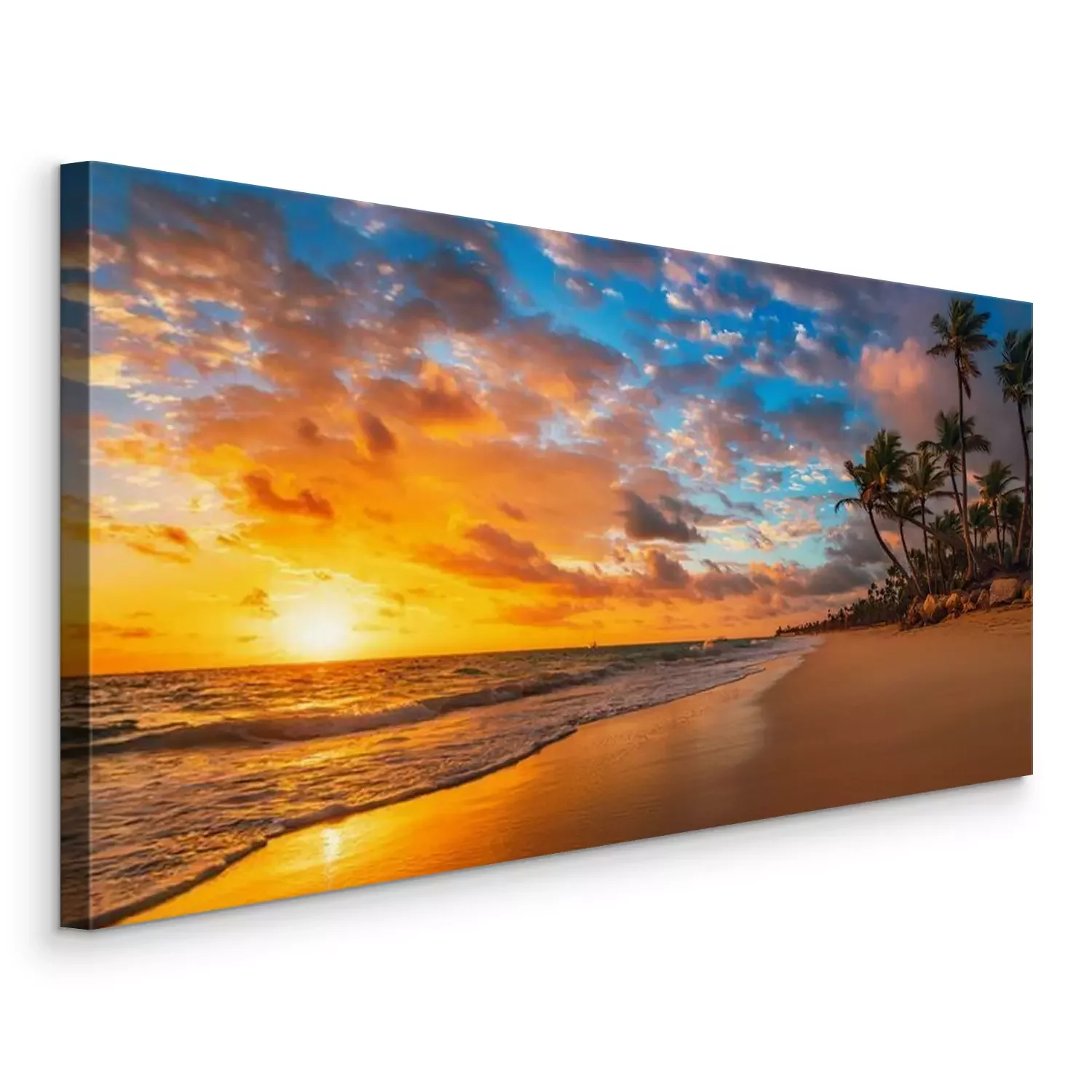 Tropisch strand in de Dominicaanse Republiek bij zonsondergang