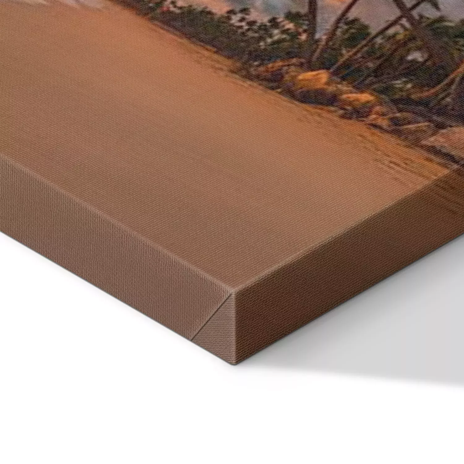 De print wordt aangebracht op hoogwaardig canvas dat op een schildersweefgetouw (spieraam) wordt gespannen. Omdat de print de zijranden bedekt, hoeft het ontwerp niet met een extra kader te worden omlijst. Wij raden ook composities aan die uit meerdere foto's bestaan en zo een coherente compositie vormen.