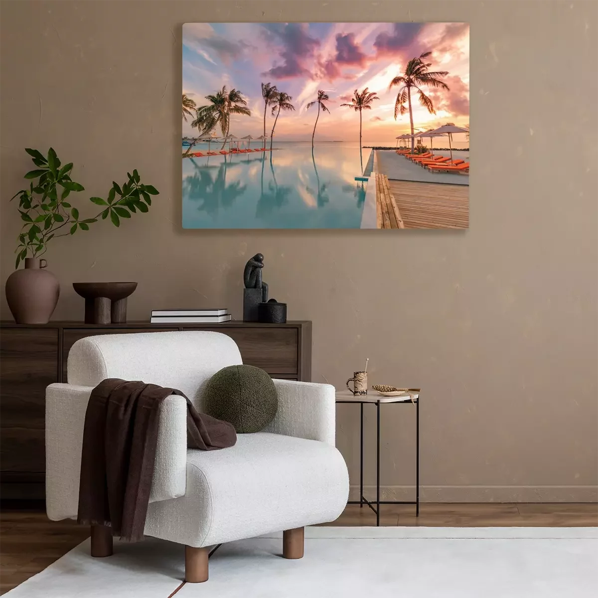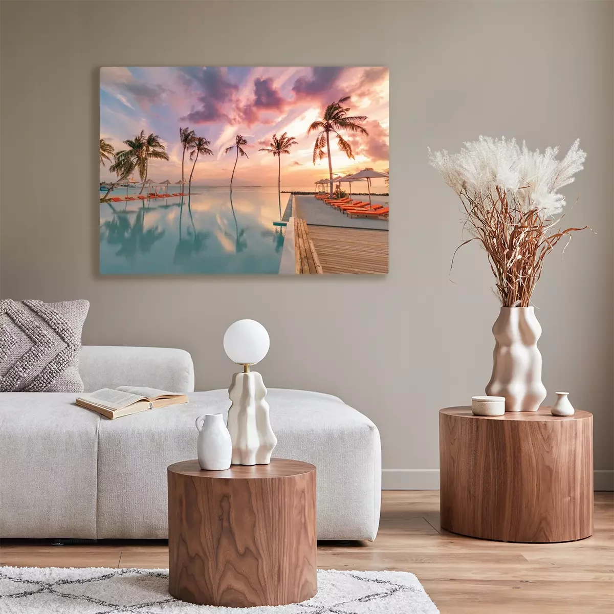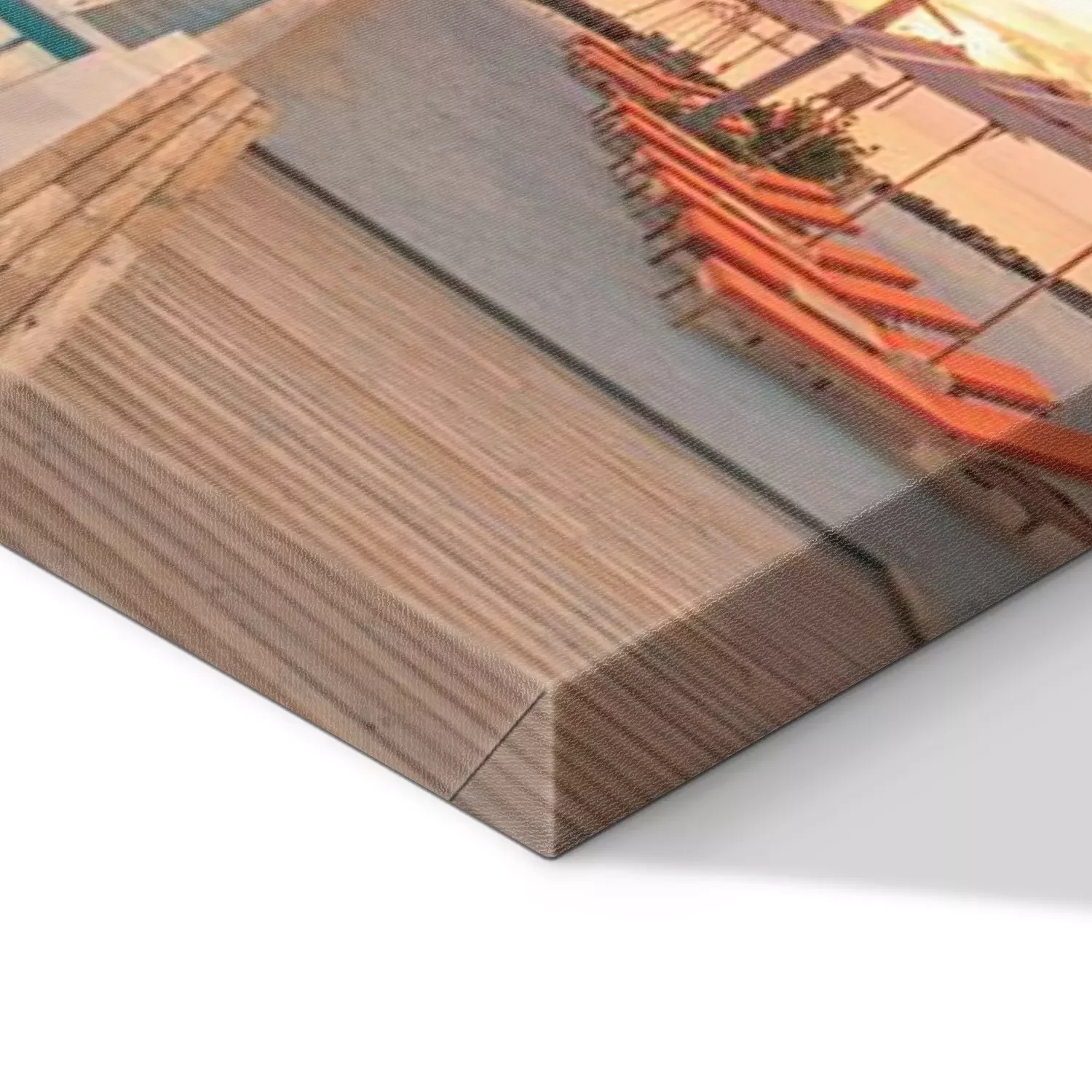 De print wordt aangebracht op hoogwaardig canvas dat op een schildersweefgetouw (spieraam) wordt gespannen. Omdat de print de zijranden bedekt, hoeft het ontwerp niet met een extra kader te worden omlijst. Wij raden ook composities aan die uit meerdere foto's bestaan en zo een coherente compositie vormen.