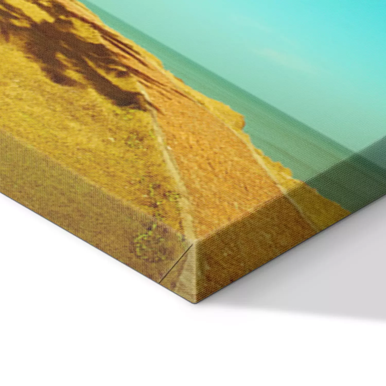 De print wordt aangebracht op hoogwaardig canvas dat op een schildersweefgetouw (spieraam) wordt gespannen. Omdat de print de zijranden bedekt, hoeft het ontwerp niet met een extra kader te worden omlijst. Wij raden ook composities aan die uit meerdere foto's bestaan en zo een coherente compositie vormen.