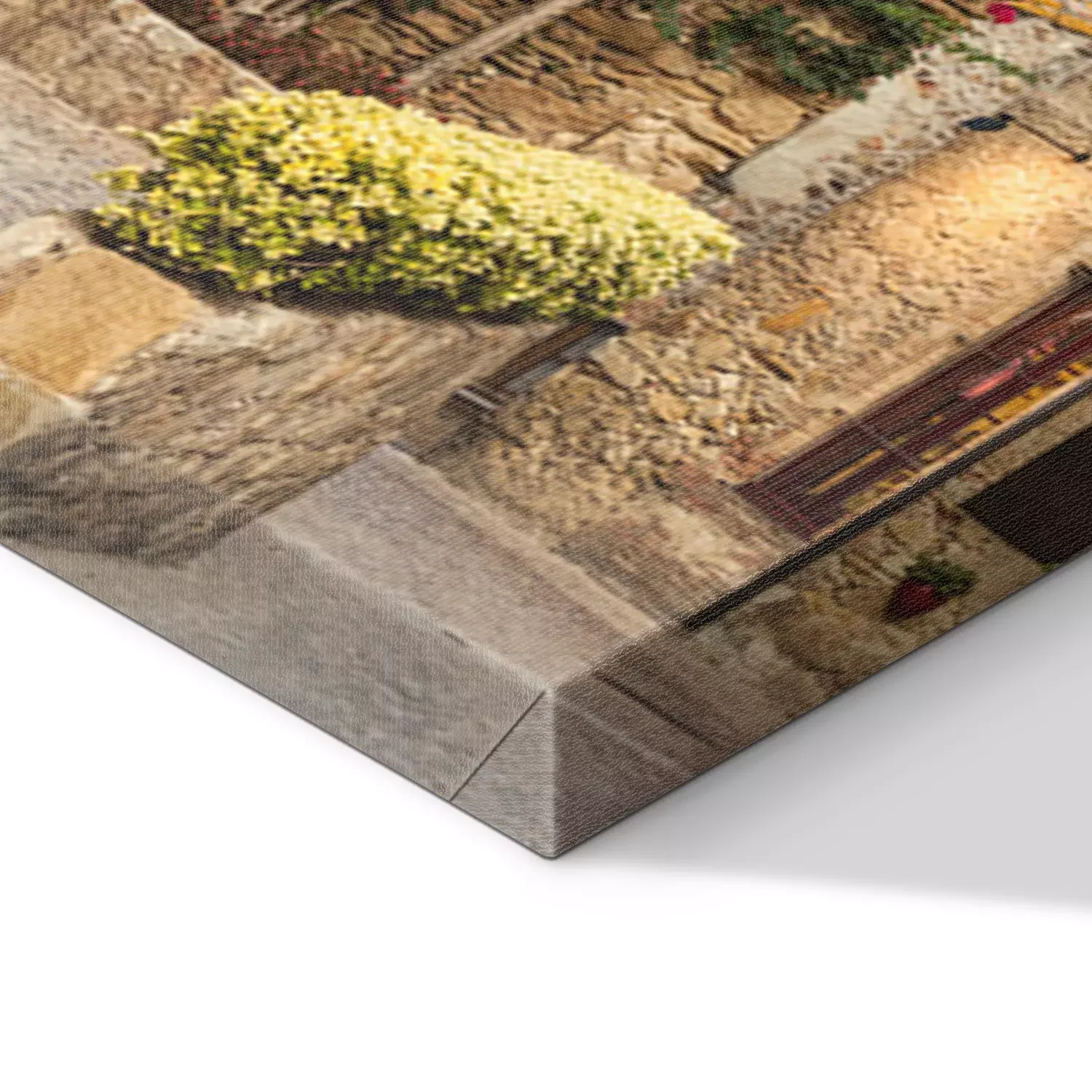 De print wordt aangebracht op hoogwaardig canvas dat op een schildersweefgetouw (spieraam) wordt gespannen. Omdat de print de zijranden bedekt, hoeft het ontwerp niet met een extra kader te worden omlijst. Wij raden ook composities aan die uit meerdere foto's bestaan en zo een coherente compositie vormen.
