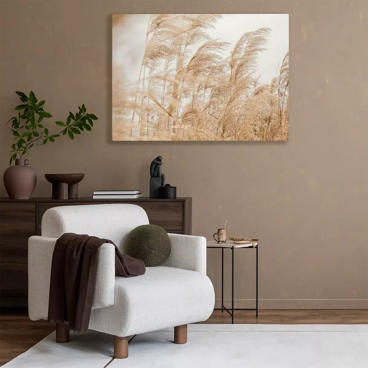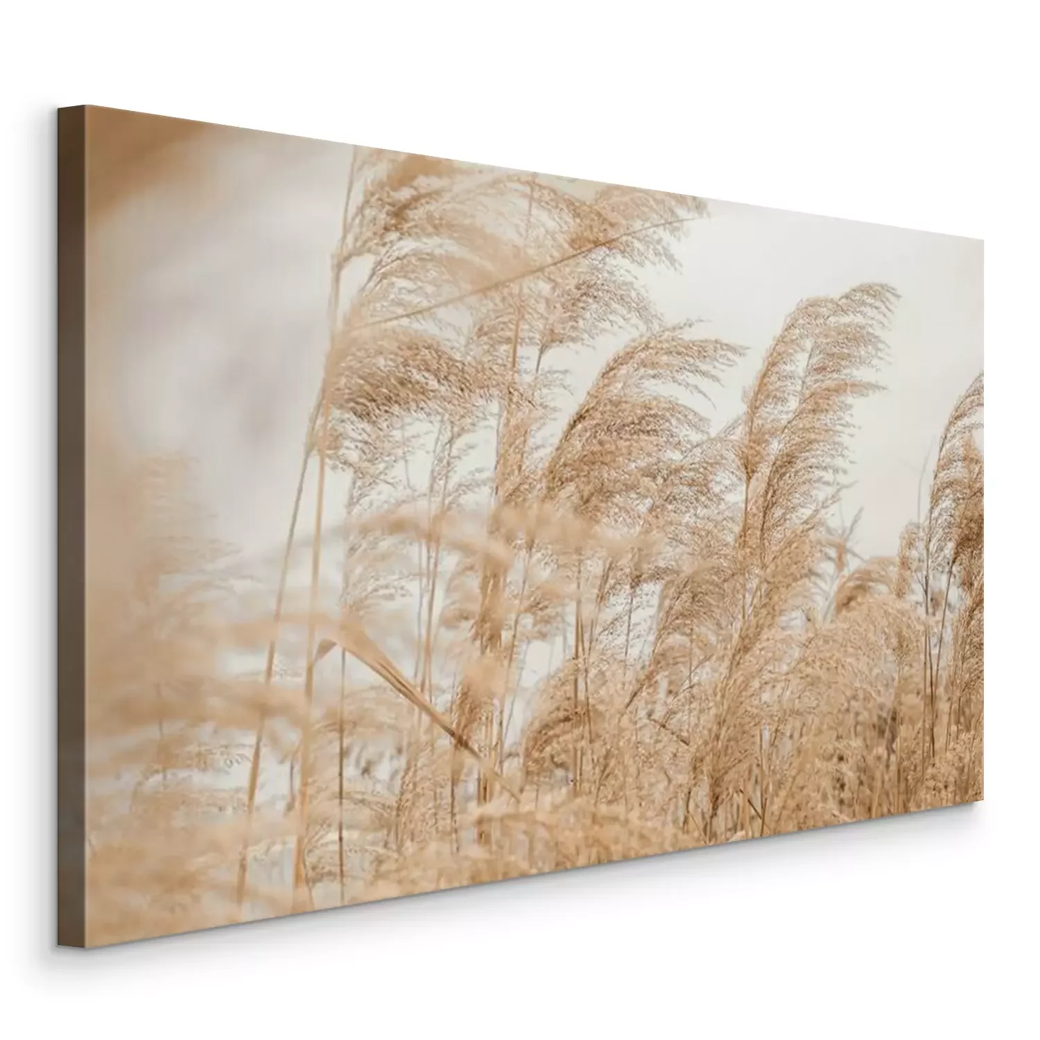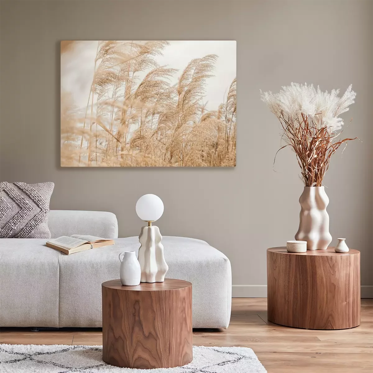 Canvas: Pampas grass outdoor in light pastel colors. Dry reeds boho style
