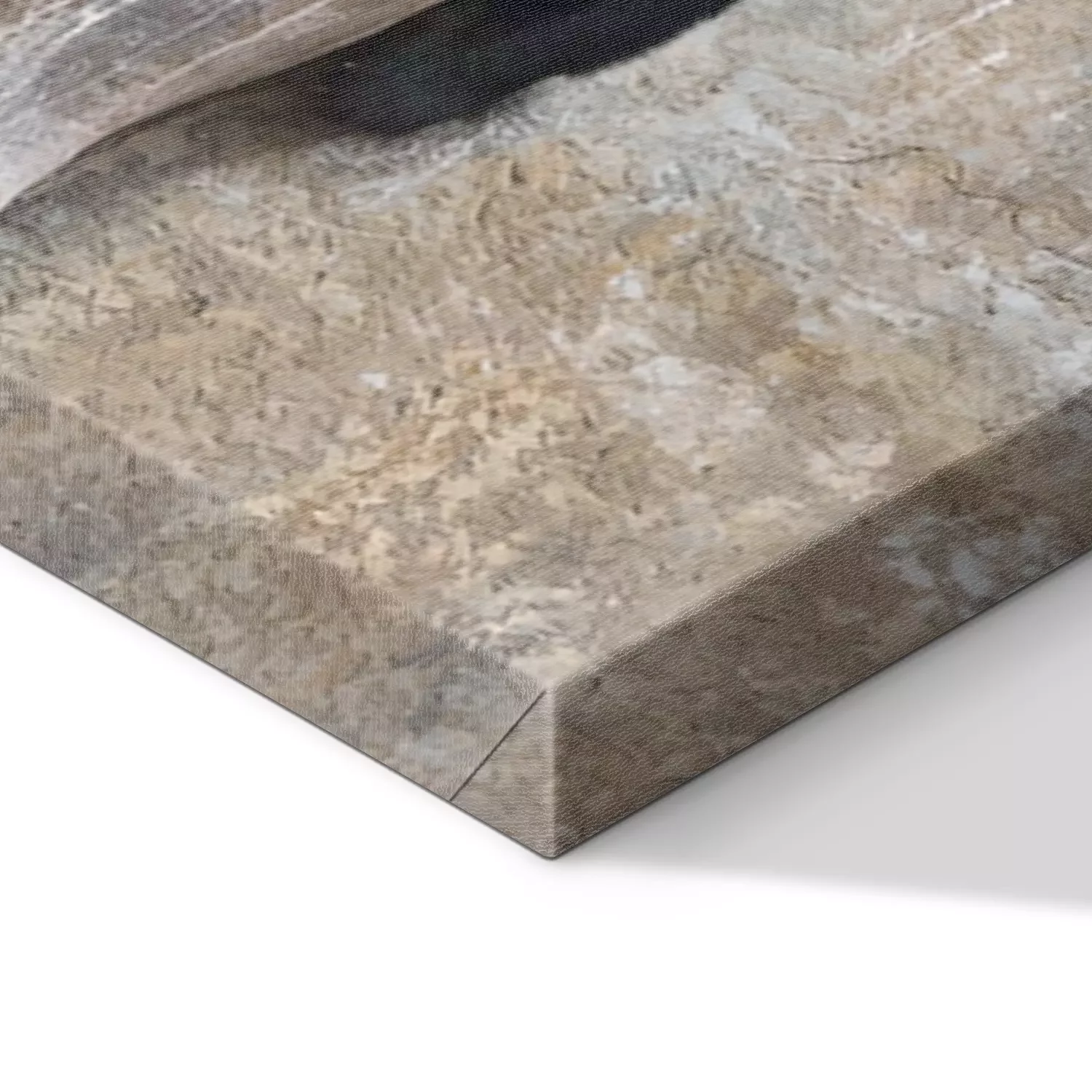 De print wordt aangebracht op hoogwaardig canvas dat op een schildersweefgetouw (spieraam) wordt gespannen. Omdat de print de zijranden bedekt, hoeft het ontwerp niet met een extra kader te worden omlijst. Wij raden ook composities aan die uit meerdere foto's bestaan en zo een coherente compositie vormen.