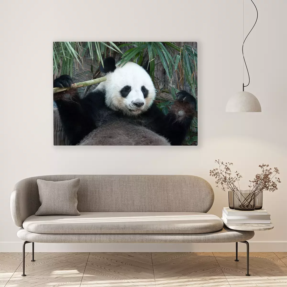 Canvas: Panda en bamboe bladeren