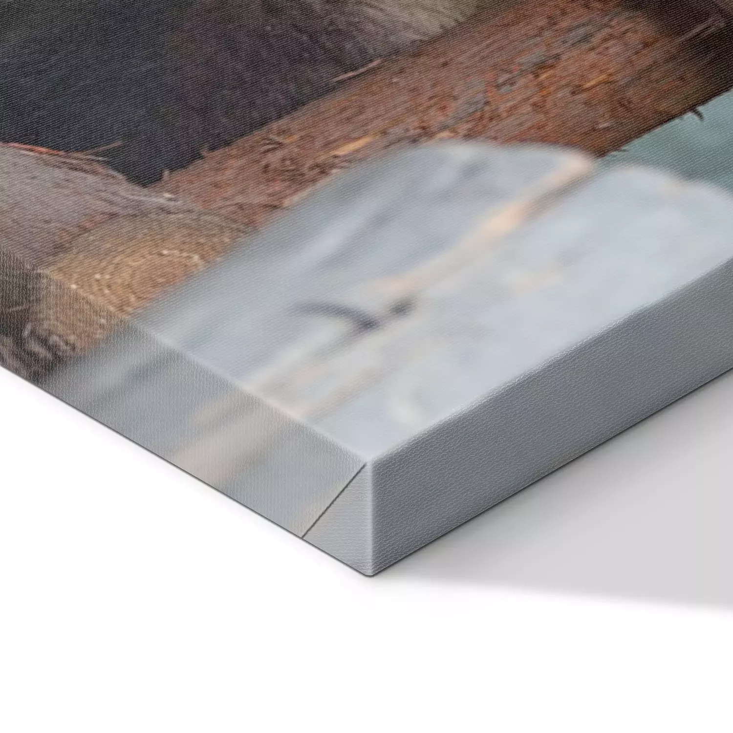 De print wordt aangebracht op hoogwaardig canvas dat op een schildersweefgetouw (spieraam) wordt gespannen. Omdat de print de zijranden bedekt, hoeft het ontwerp niet met een extra kader te worden omlijst. Wij raden ook composities aan die uit meerdere foto's bestaan en zo een coherente compositie vormen.