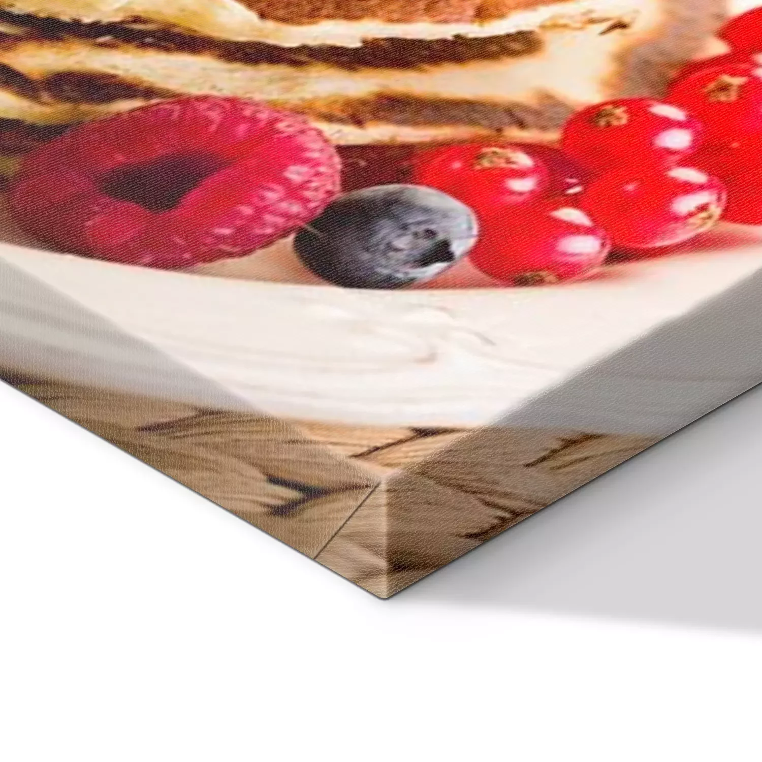 De print wordt aangebracht op hoogwaardig canvas dat op een schildersweefgetouw (spieraam) wordt gespannen. Omdat de print de zijranden bedekt, hoeft het ontwerp niet met een extra kader te worden omlijst. Wij raden ook composities aan die uit meerdere foto's bestaan en zo een coherente compositie vormen.