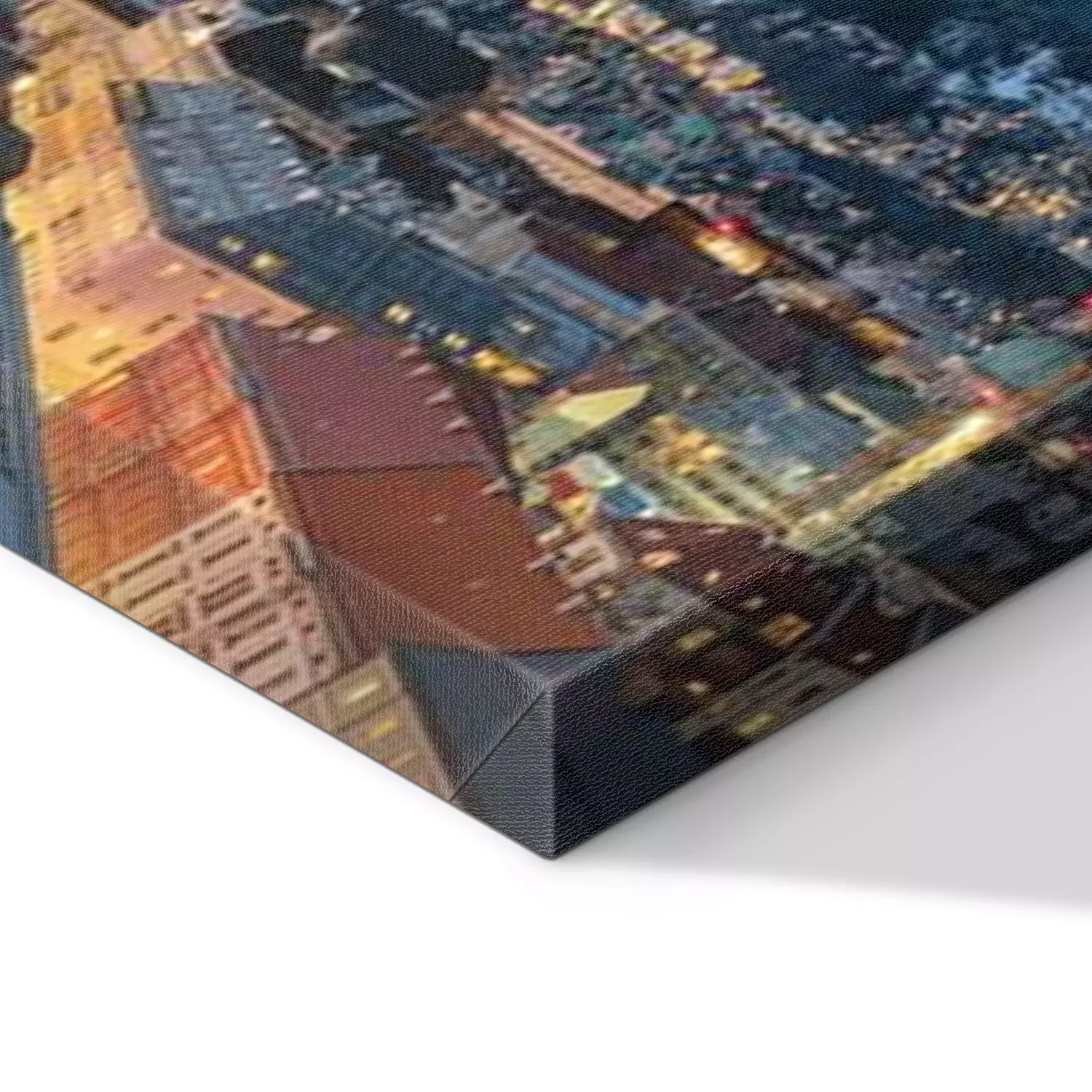 De print wordt aangebracht op hoogwaardig canvas dat op een schildersweefgetouw (spieraam) wordt gespannen. Omdat de print de zijranden bedekt, hoeft het ontwerp niet met een extra kader te worden omlijst. Wij raden ook composities aan die uit meerdere foto's bestaan en zo een coherente compositie vormen.