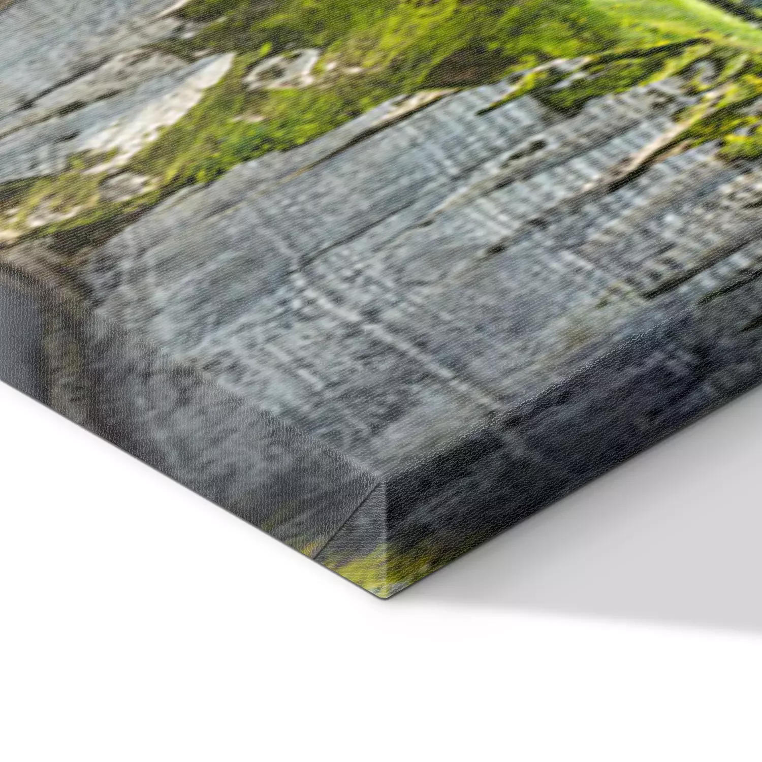 De print wordt aangebracht op hoogwaardig canvas dat op een schildersweefgetouw (spieraam) wordt gespannen. Omdat de print de zijranden bedekt, hoeft het ontwerp niet met een extra kader te worden omlijst. Wij raden ook composities aan die uit meerdere foto's bestaan en zo een coherente compositie vormen.