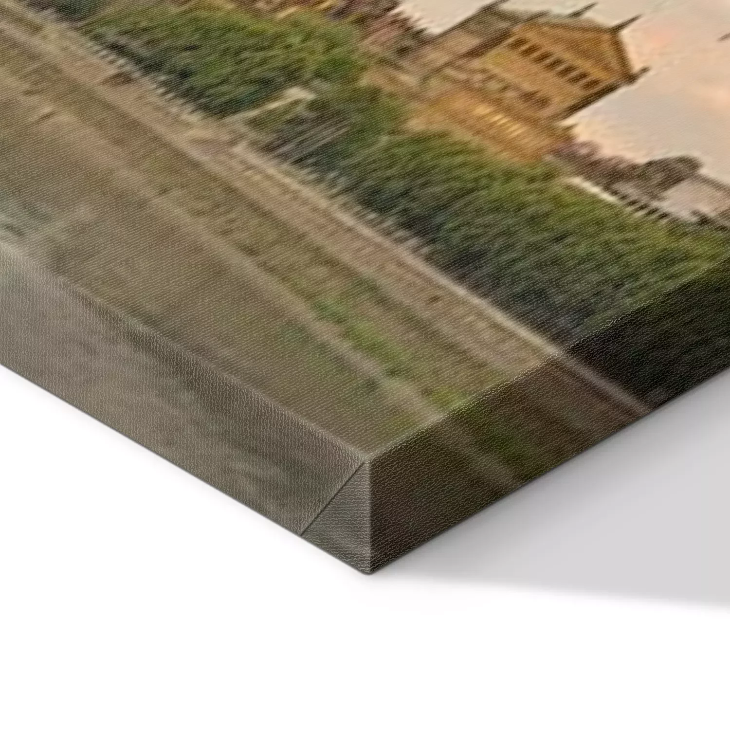 De print wordt aangebracht op hoogwaardig canvas dat op een schildersweefgetouw (spieraam) wordt gespannen. Omdat de print de zijranden bedekt, hoeft het ontwerp niet met een extra kader te worden omlijst. Wij raden ook composities aan die uit meerdere foto's bestaan en zo een coherente compositie vormen.