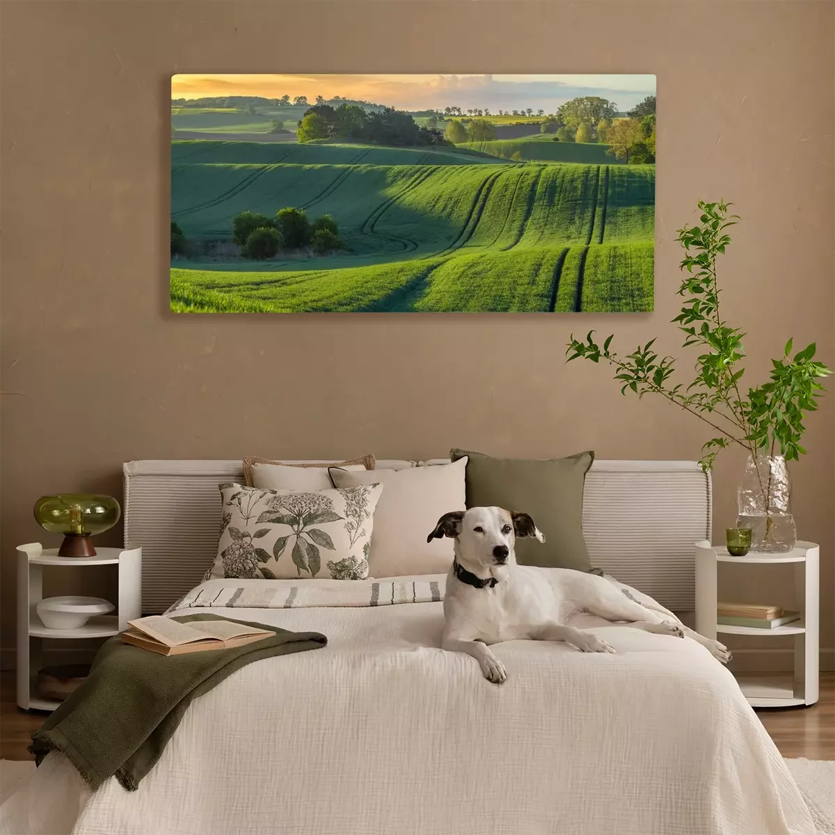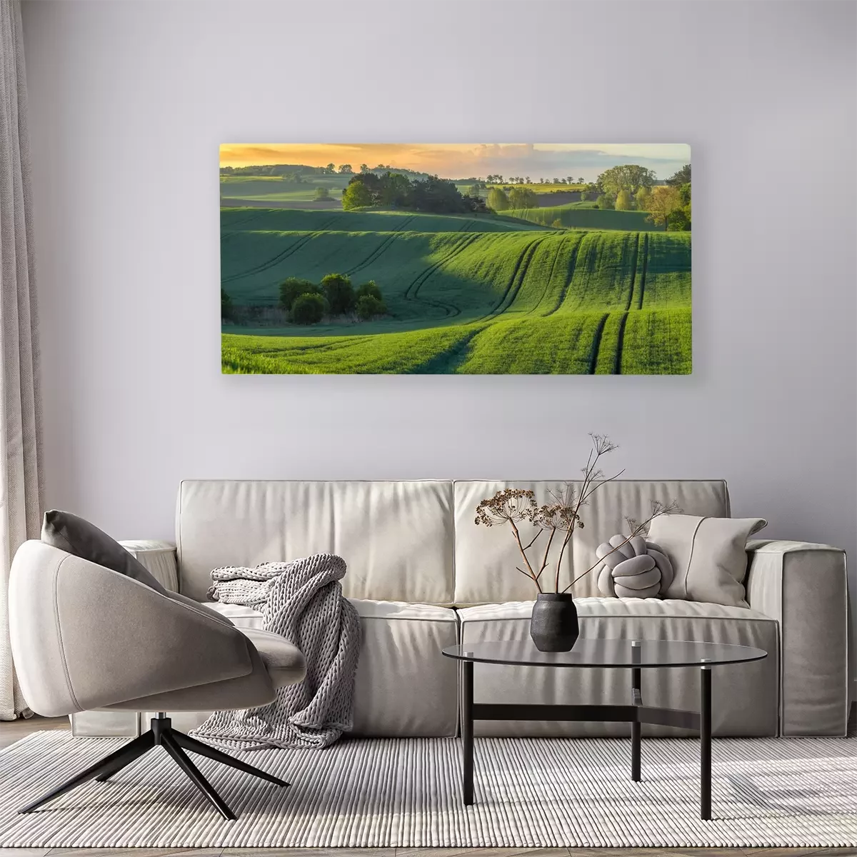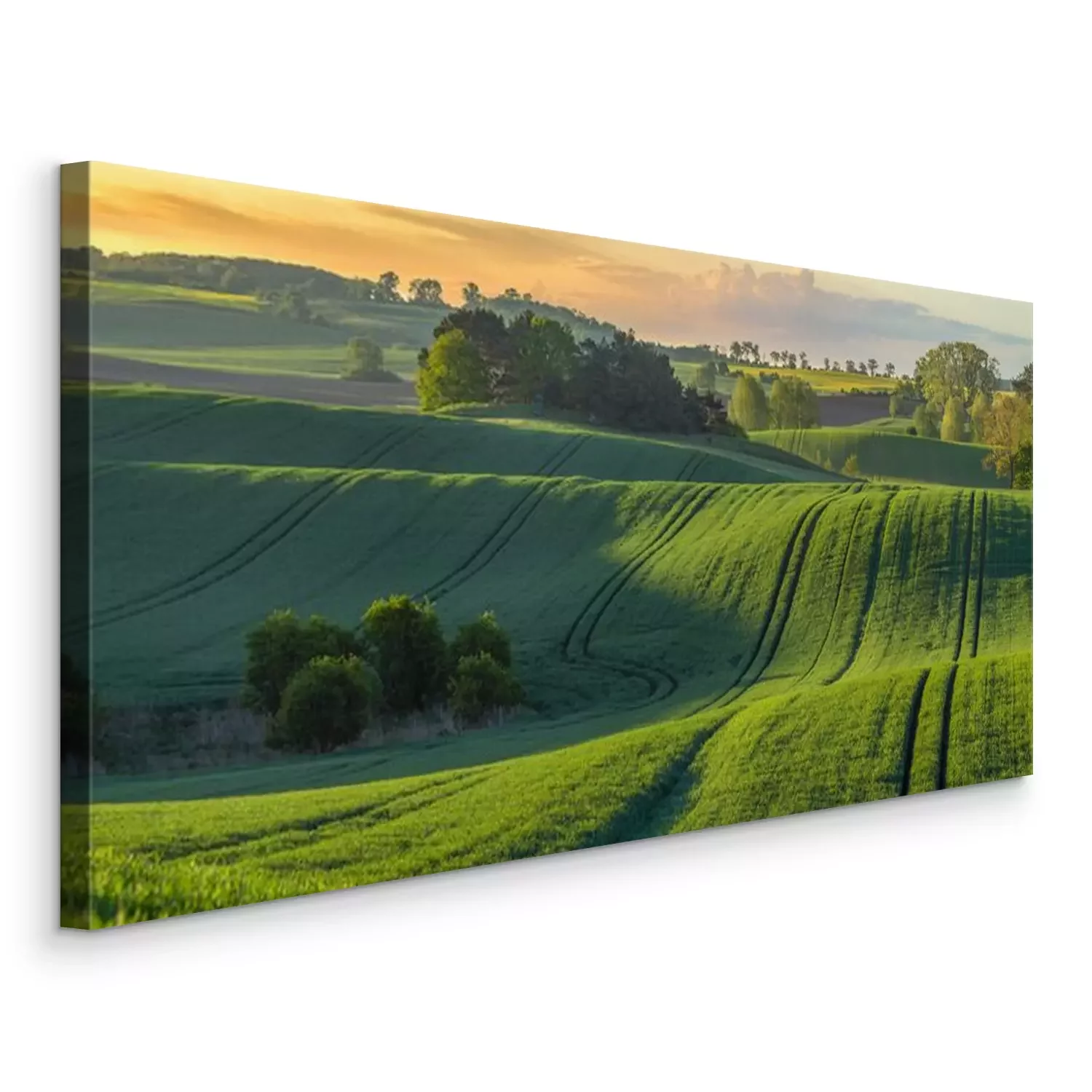 Canvas: Panorama met zonsopgang over de velden
