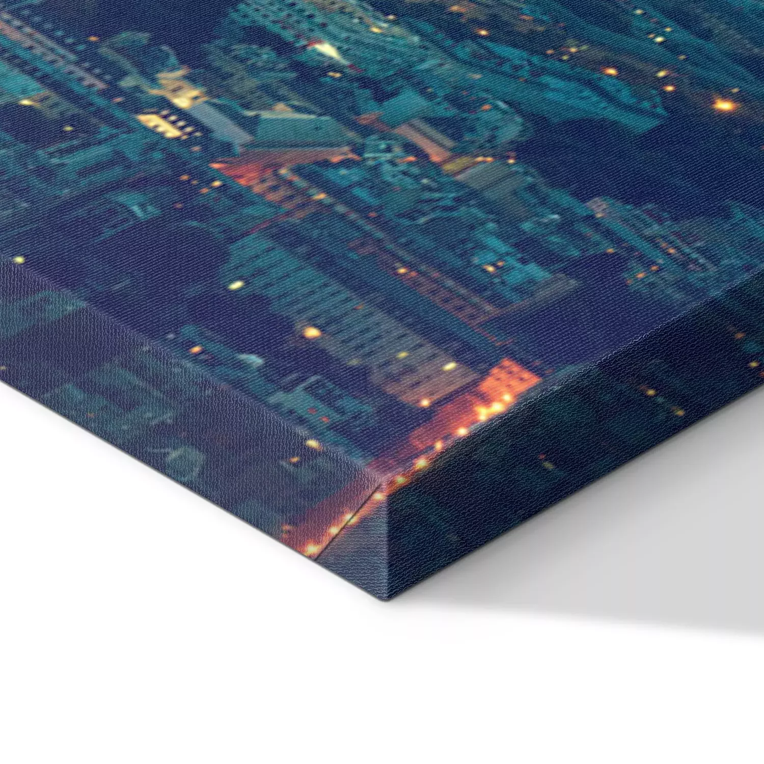 De print wordt aangebracht op hoogwaardig canvas dat op een schildersweefgetouw (spieraam) wordt gespannen. Omdat de print de zijranden bedekt, hoeft het ontwerp niet met een extra kader te worden omlijst. Wij raden ook composities aan die uit meerdere foto's bestaan en zo een coherente compositie vormen.