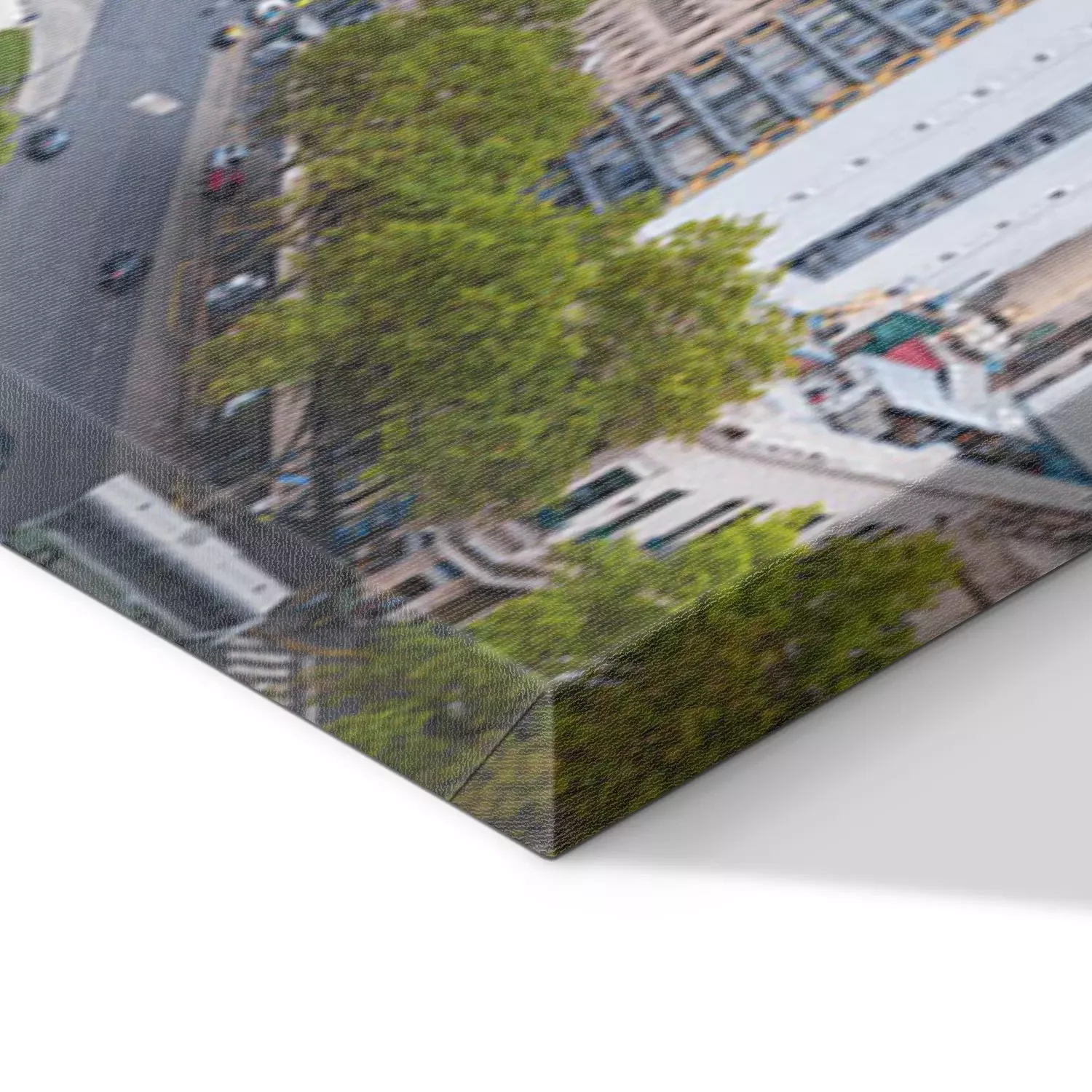 De print wordt aangebracht op hoogwaardig canvas dat op een schildersweefgetouw (spieraam) wordt gespannen. Omdat de print de zijranden bedekt, hoeft het ontwerp niet met een extra kader te worden omlijst. Wij raden ook composities aan die uit meerdere foto's bestaan en zo een coherente compositie vormen.