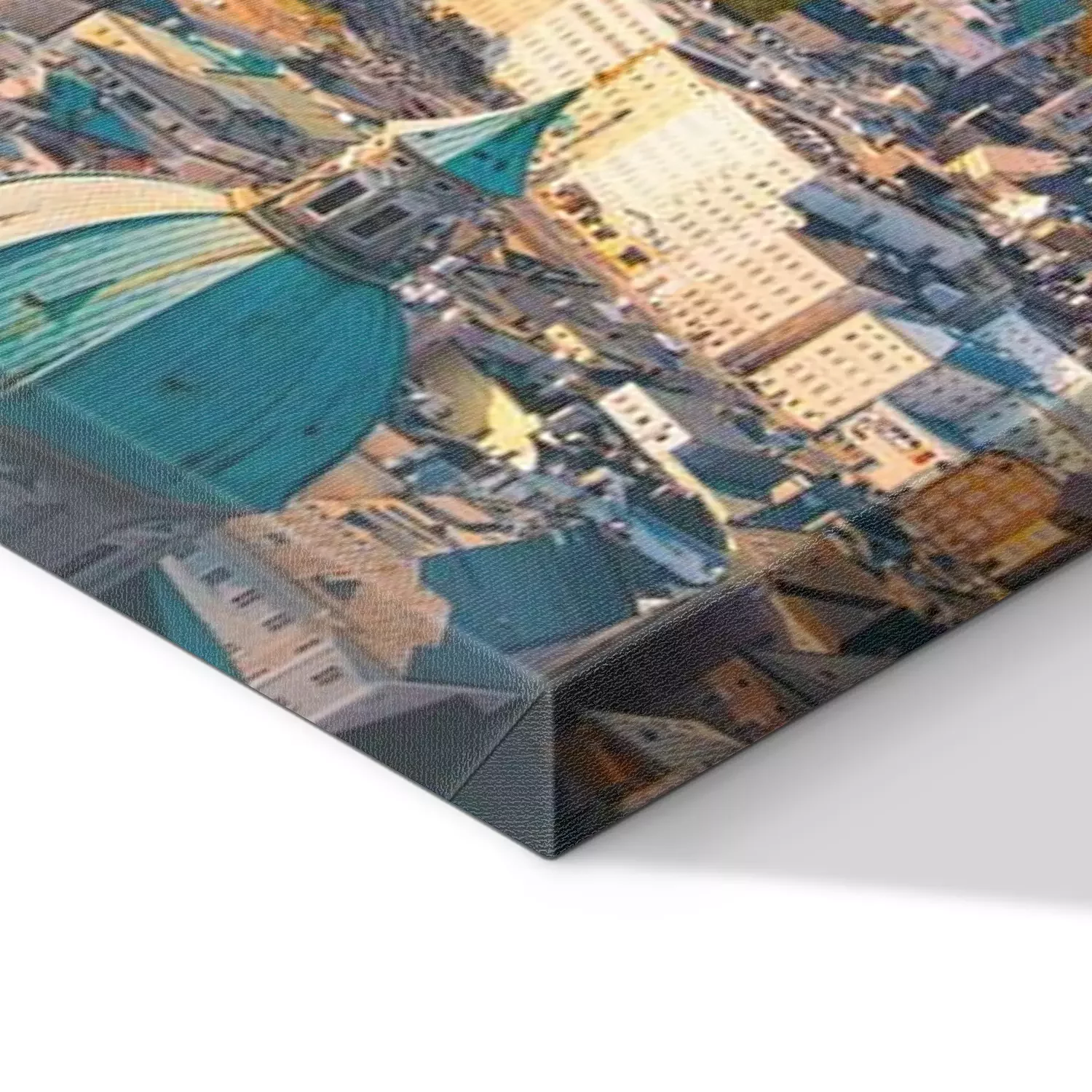 De print wordt aangebracht op hoogwaardig canvas dat op een schildersweefgetouw (spieraam) wordt gespannen. Omdat de print de zijranden bedekt, hoeft het ontwerp niet met een extra kader te worden omlijst. Wij raden ook composities aan die uit meerdere foto's bestaan en zo een coherente compositie vormen.