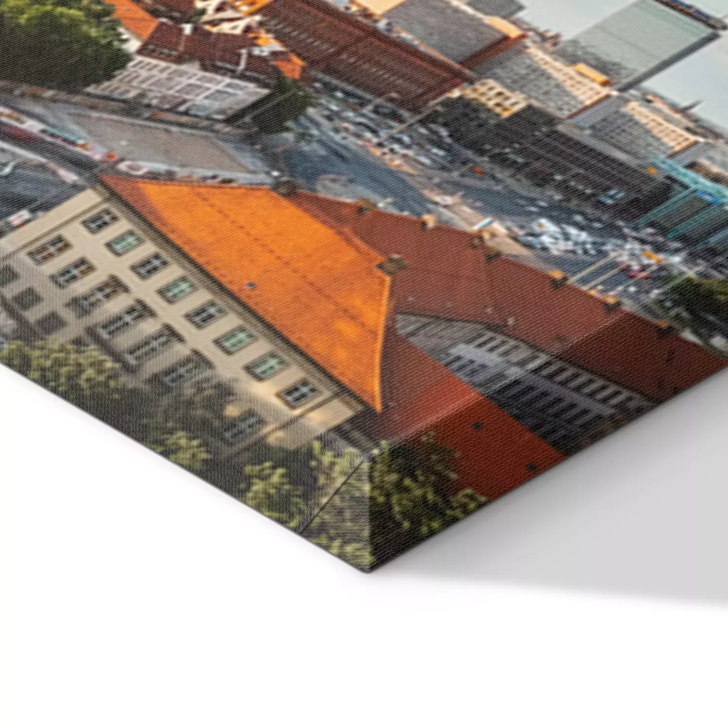 De print wordt aangebracht op hoogwaardig canvas dat op een schildersweefgetouw (spieraam) wordt gespannen. Omdat de print de zijranden bedekt, hoeft het ontwerp niet met een extra kader te worden omlijst. Wij raden ook composities aan die uit meerdere foto's bestaan en zo een coherente compositie vormen.