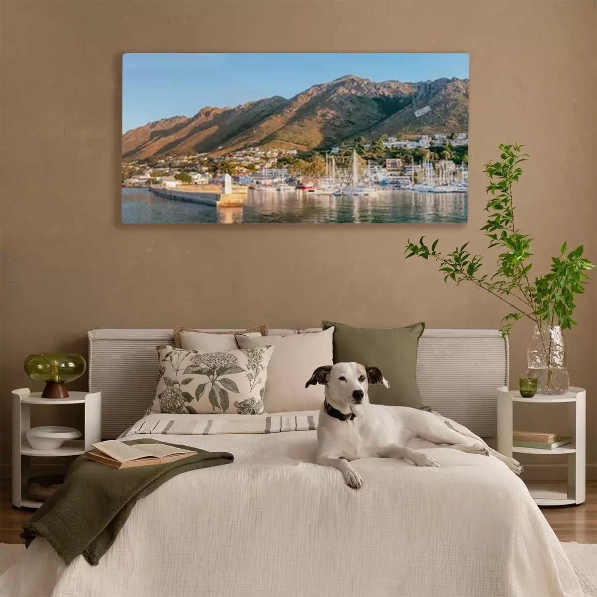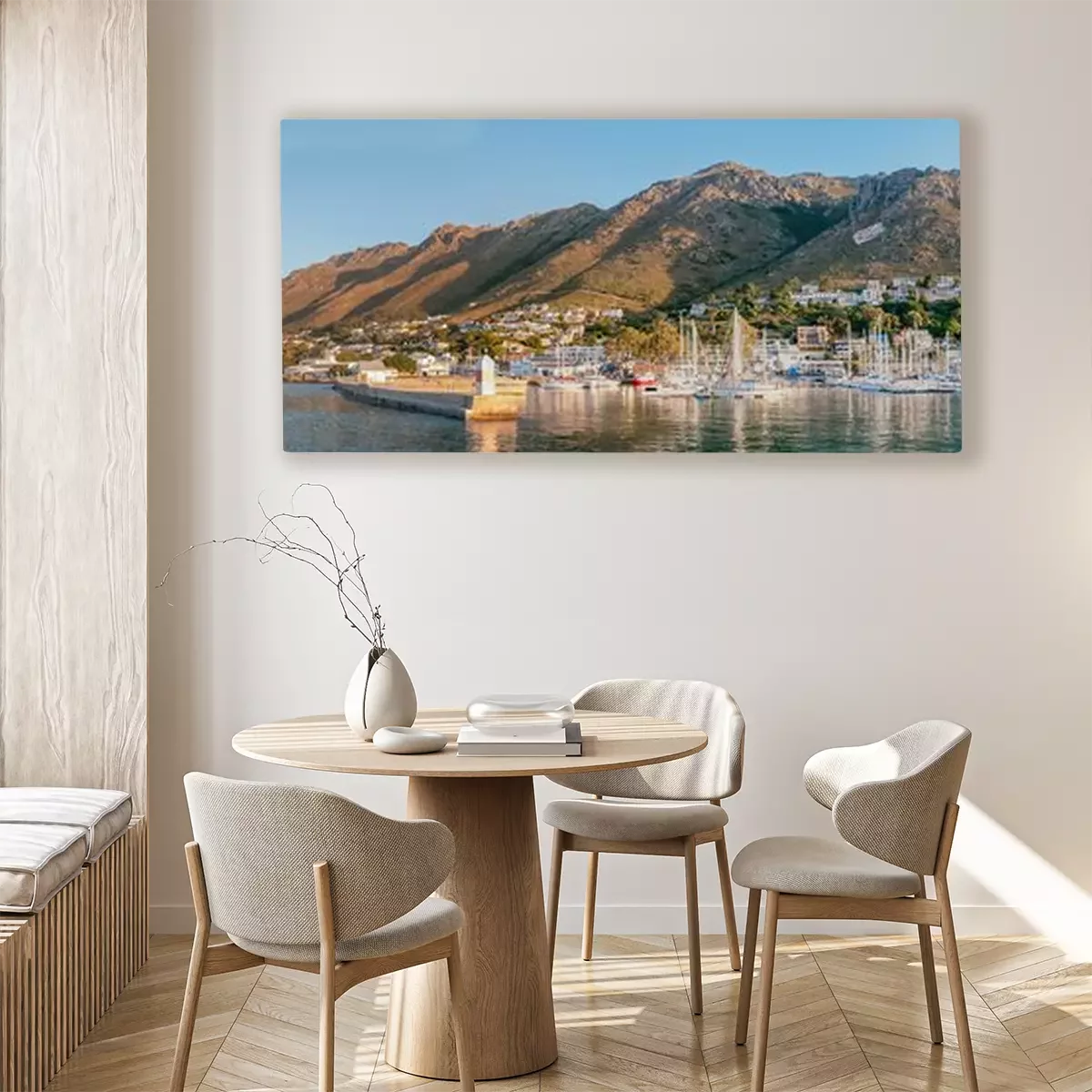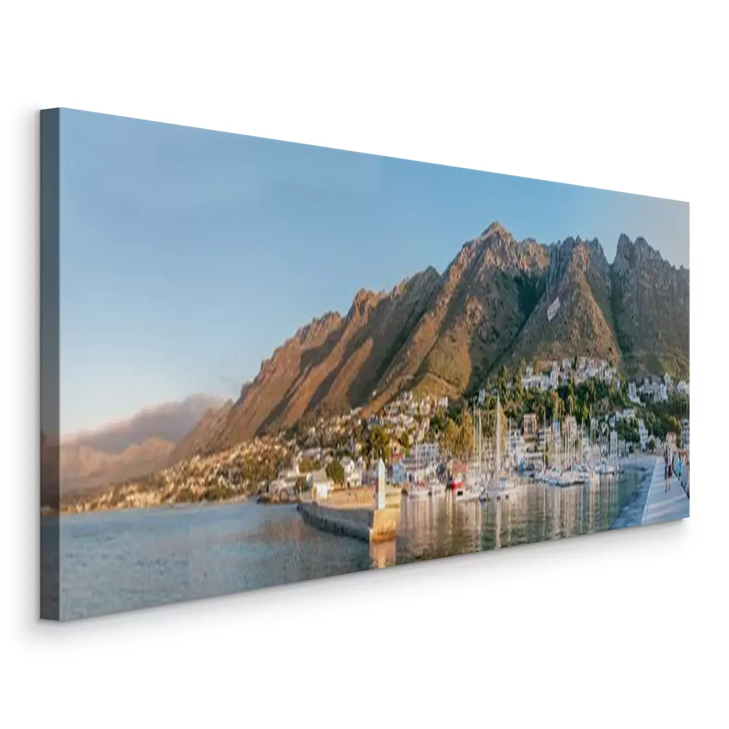 Canvas Panorama van de haven van de Baai van Gordon's en Hottentots Holland Bergen