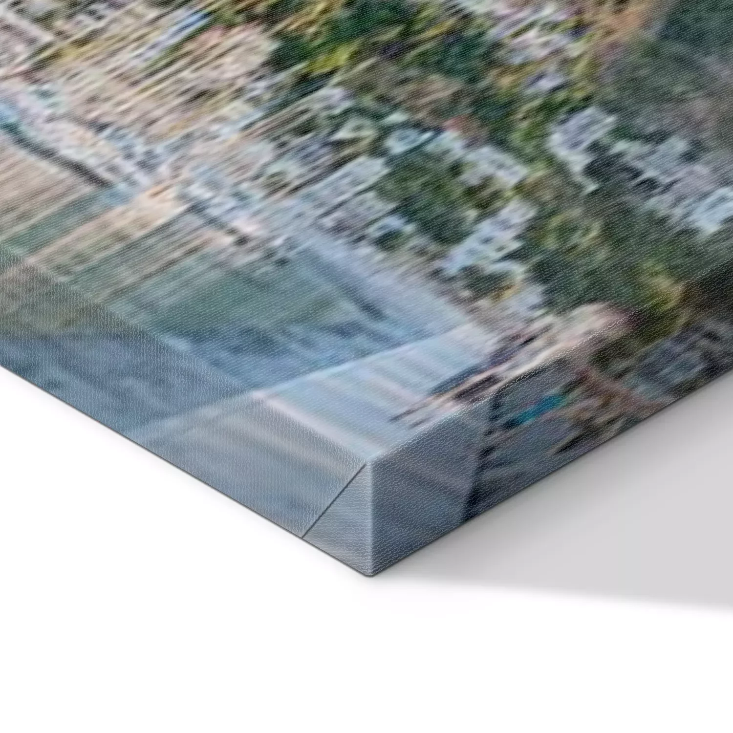 De print wordt aangebracht op hoogwaardig canvas dat op een schildersweefgetouw (spieraam) wordt gespannen. Omdat de print de zijranden bedekt, hoeft het ontwerp niet met een extra kader te worden omlijst. Wij raden ook composities aan die uit meerdere foto's bestaan en zo een coherente compositie vormen.