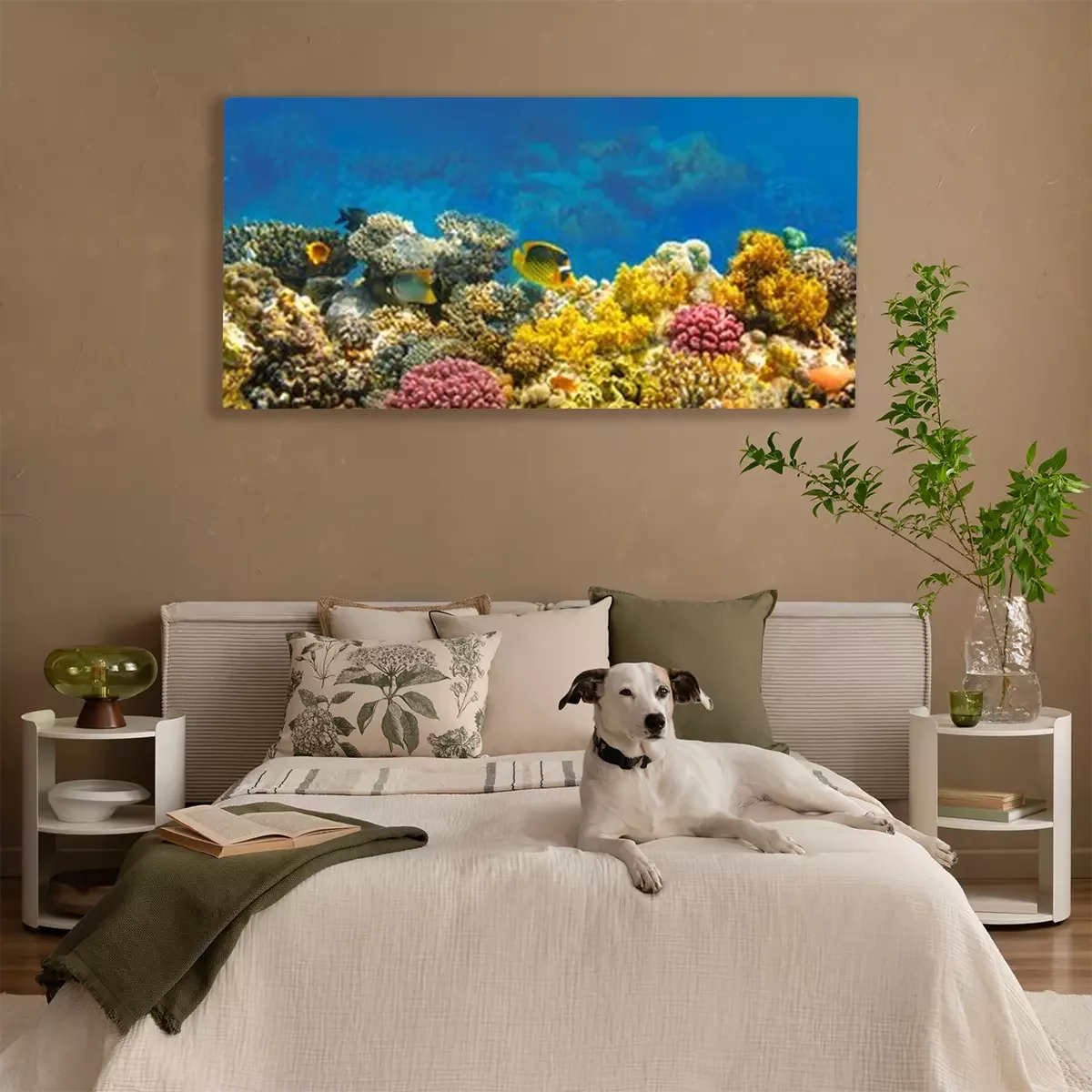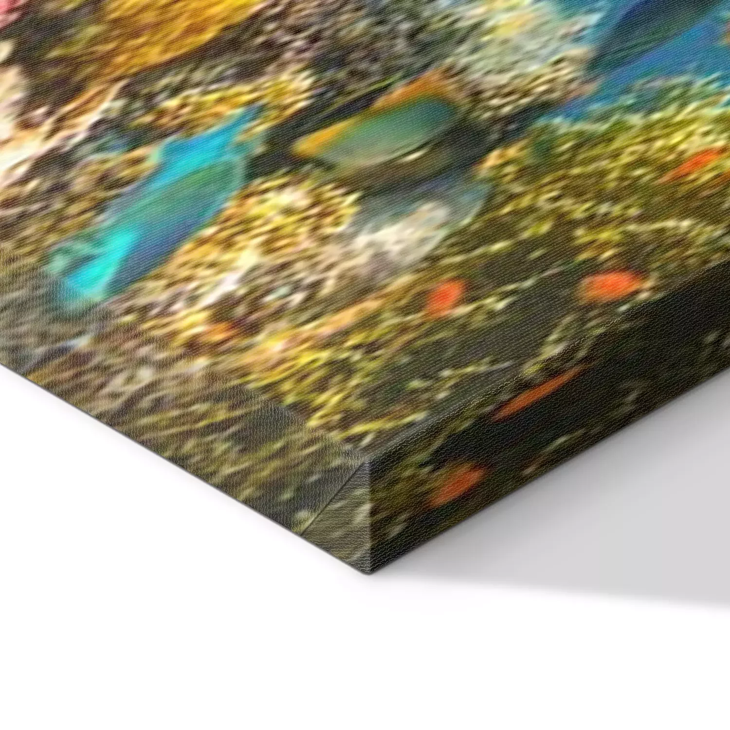 De print wordt aangebracht op hoogwaardig canvas dat op een schildersweefgetouw (spieraam) wordt gespannen. Omdat de print de zijranden bedekt, hoeft het ontwerp niet met een extra kader te worden omlijst. Wij raden ook composities aan die uit meerdere foto's bestaan en zo een coherente compositie vormen.