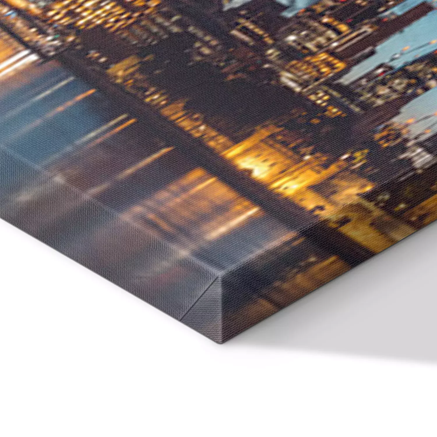 De print wordt aangebracht op hoogwaardig canvas dat op een schildersweefgetouw (spieraam) wordt gespannen. Omdat de print de zijranden bedekt, hoeft het ontwerp niet met een extra kader te worden omlijst. Wij raden ook composities aan die uit meerdere foto's bestaan en zo een coherente compositie vormen.