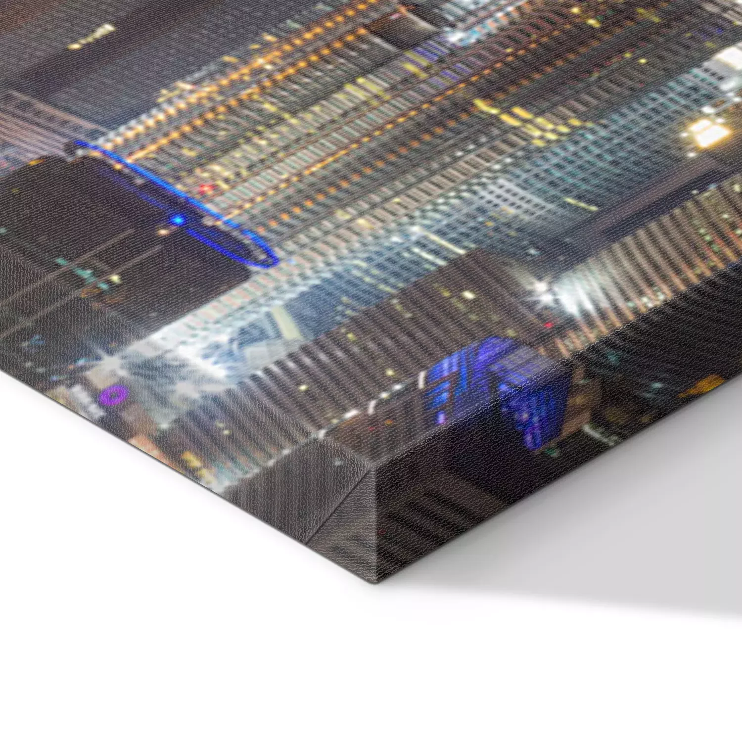 De print wordt aangebracht op hoogwaardig canvas dat op een schildersweefgetouw (spieraam) wordt gespannen. Omdat de print de zijranden bedekt, hoeft het ontwerp niet met een extra kader te worden omlijst. Wij raden ook composities aan die uit meerdere foto's bestaan en zo een coherente compositie vormen.