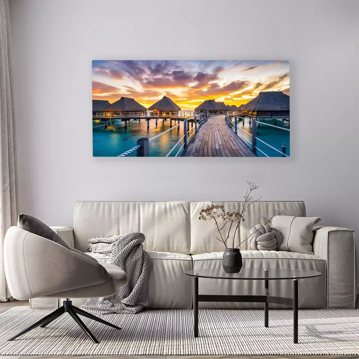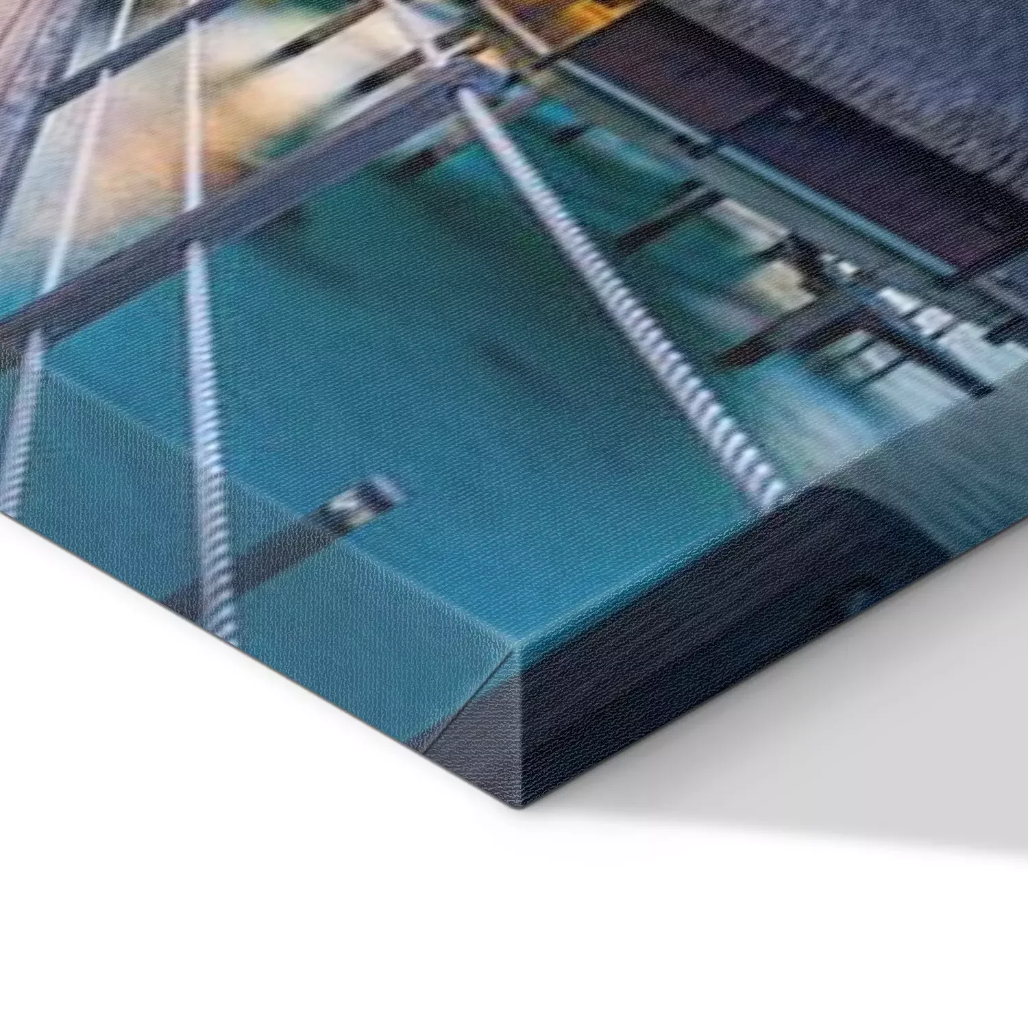 De print wordt aangebracht op hoogwaardig canvas dat op een schildersweefgetouw (spieraam) wordt gespannen. Omdat de print de zijranden bedekt, hoeft het ontwerp niet met een extra kader te worden omlijst. Wij raden ook composities aan die uit meerdere foto's bestaan en zo een coherente compositie vormen.