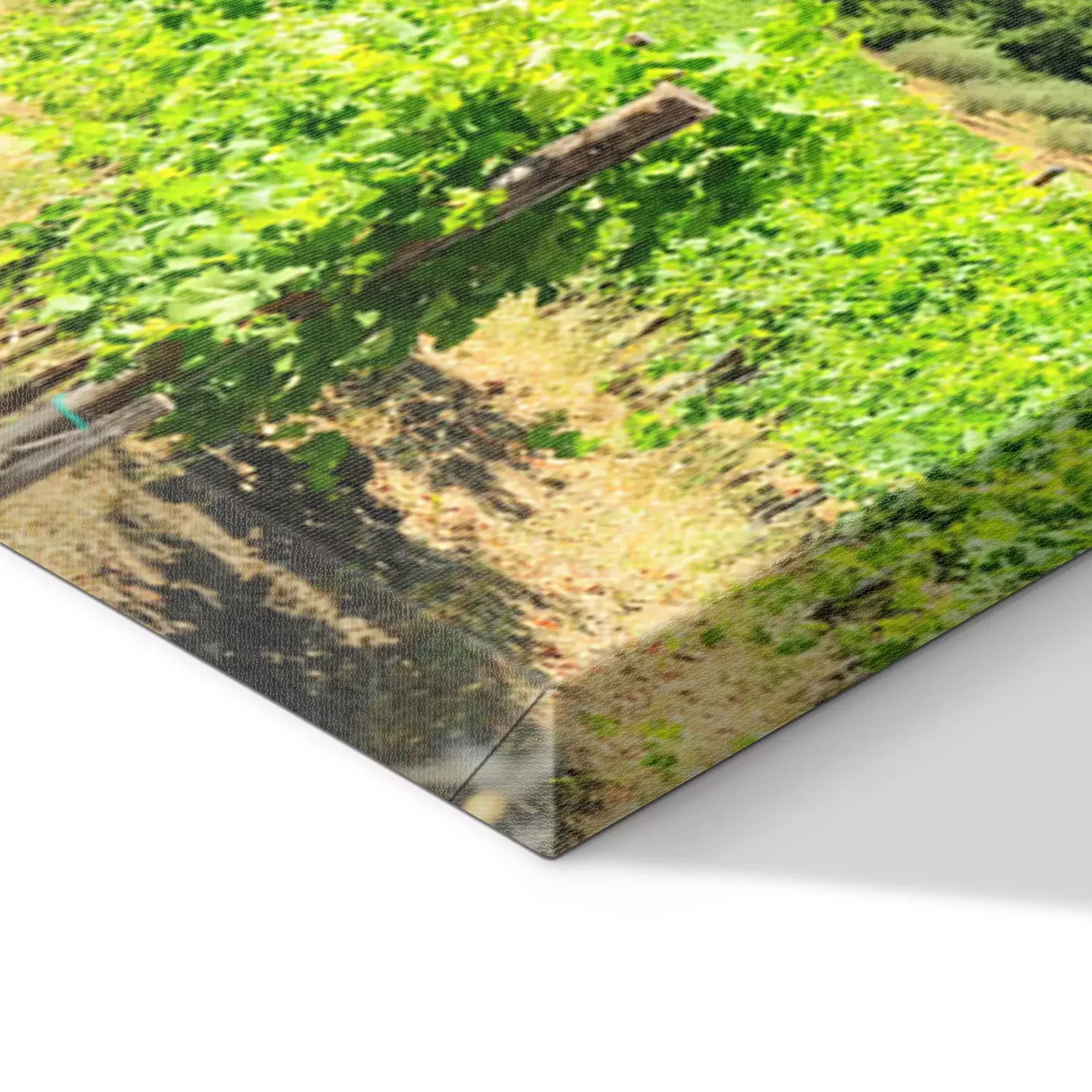 De print wordt aangebracht op hoogwaardig canvas dat op een schildersweefgetouw (spieraam) wordt gespannen. Omdat de print de zijranden bedekt, hoeft het ontwerp niet met een extra kader te worden omlijst. Wij raden ook composities aan die uit meerdere foto's bestaan en zo een coherente compositie vormen.