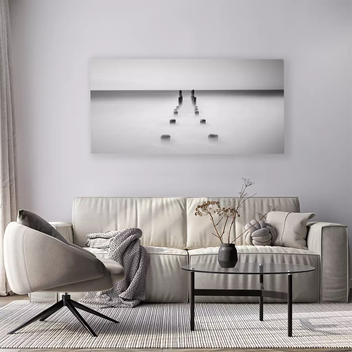 De print wordt aangebracht op hoogwaardig canvas dat op een schildersweefgetouw (spieraam) wordt gespannen. Omdat de print de zijranden bedekt, hoeft het ontwerp niet met een extra kader te worden omlijst. Wij raden ook composities aan die uit meerdere foto's bestaan en zo een coherente compositie vormen.