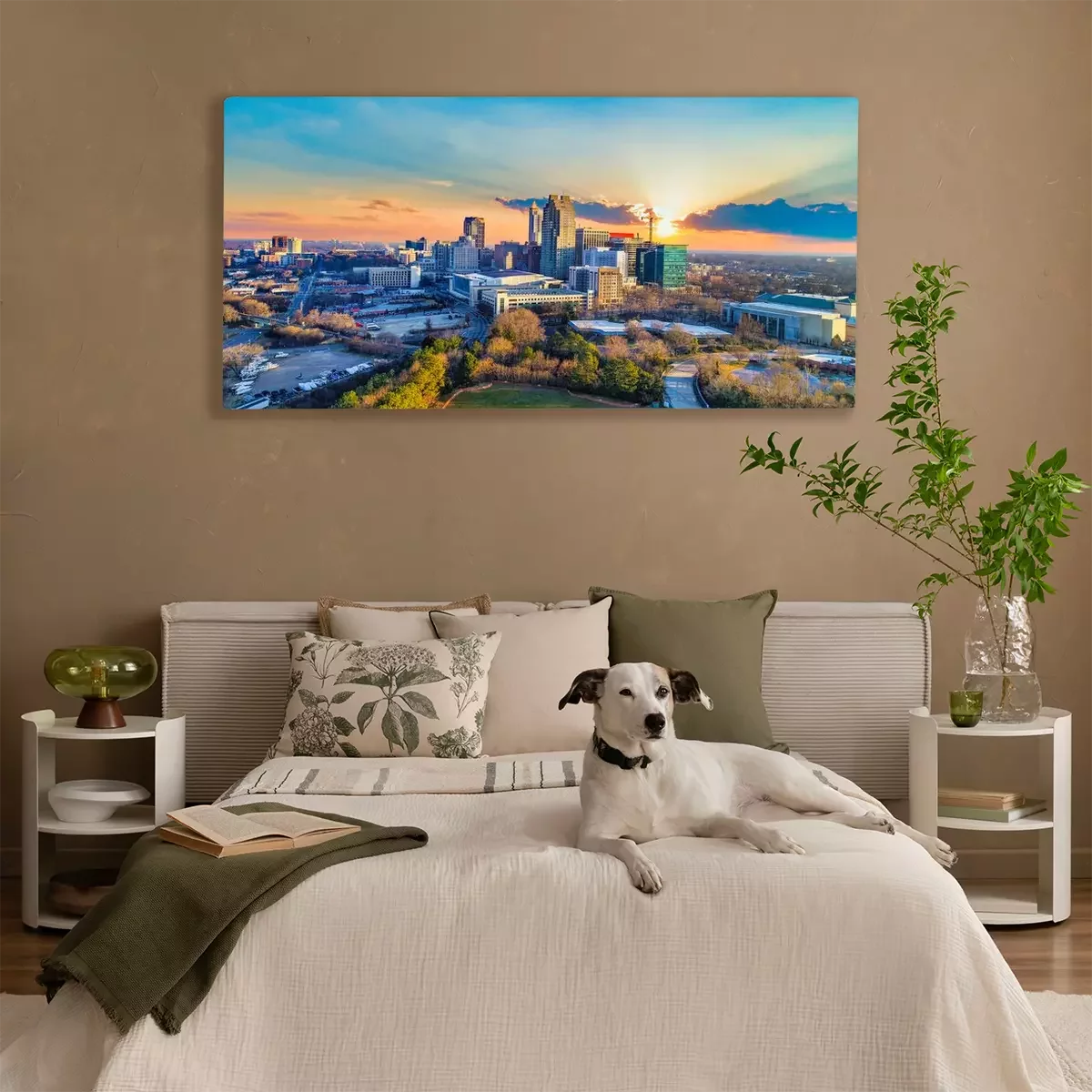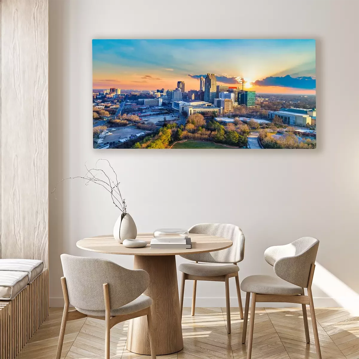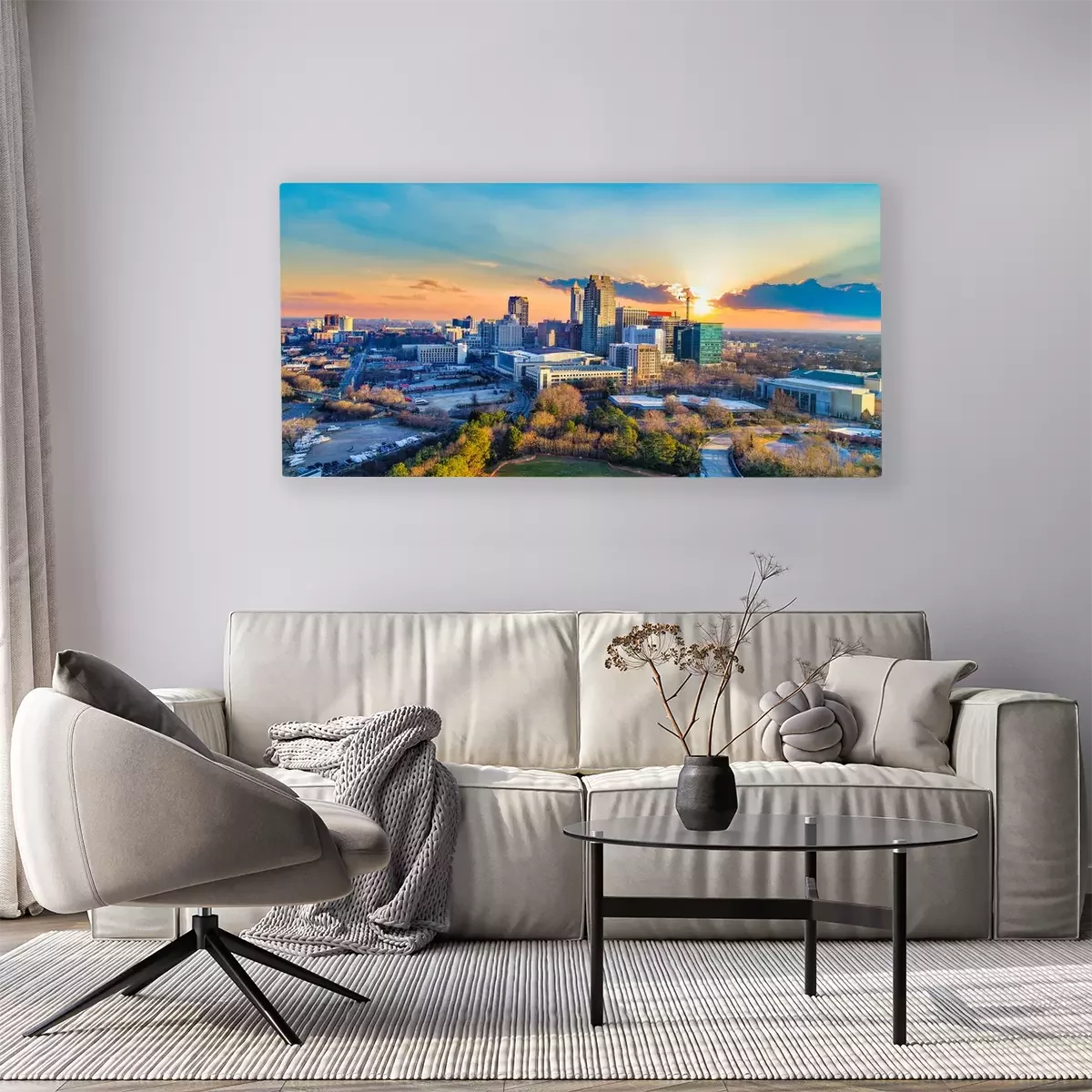 De print wordt aangebracht op hoogwaardig canvas dat op een schildersweefgetouw (spieraam) wordt gespannen. Omdat de print de zijranden bedekt, hoeft het ontwerp niet met een extra kader te worden omlijst. Wij raden ook composities aan die uit meerdere foto's bestaan en zo een coherente compositie vormen.
