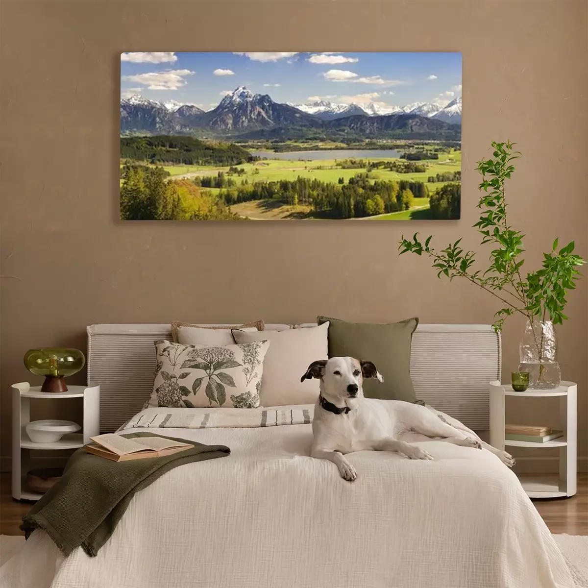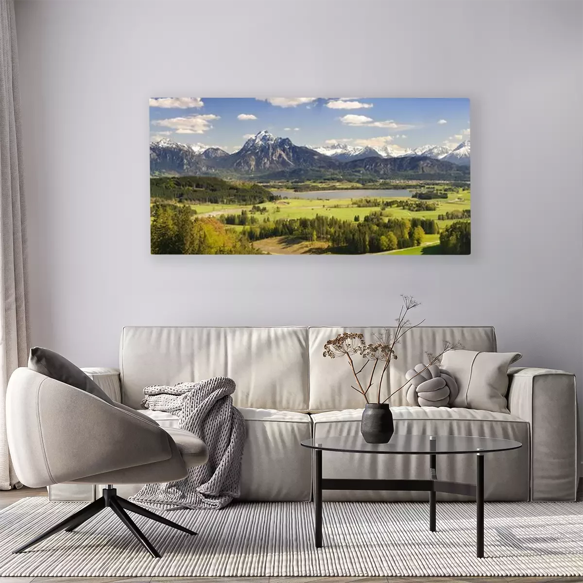 Bergpanorama met velden en de AlpenProbleemloze bezorging verzorgd door vertrouwde vervoerders