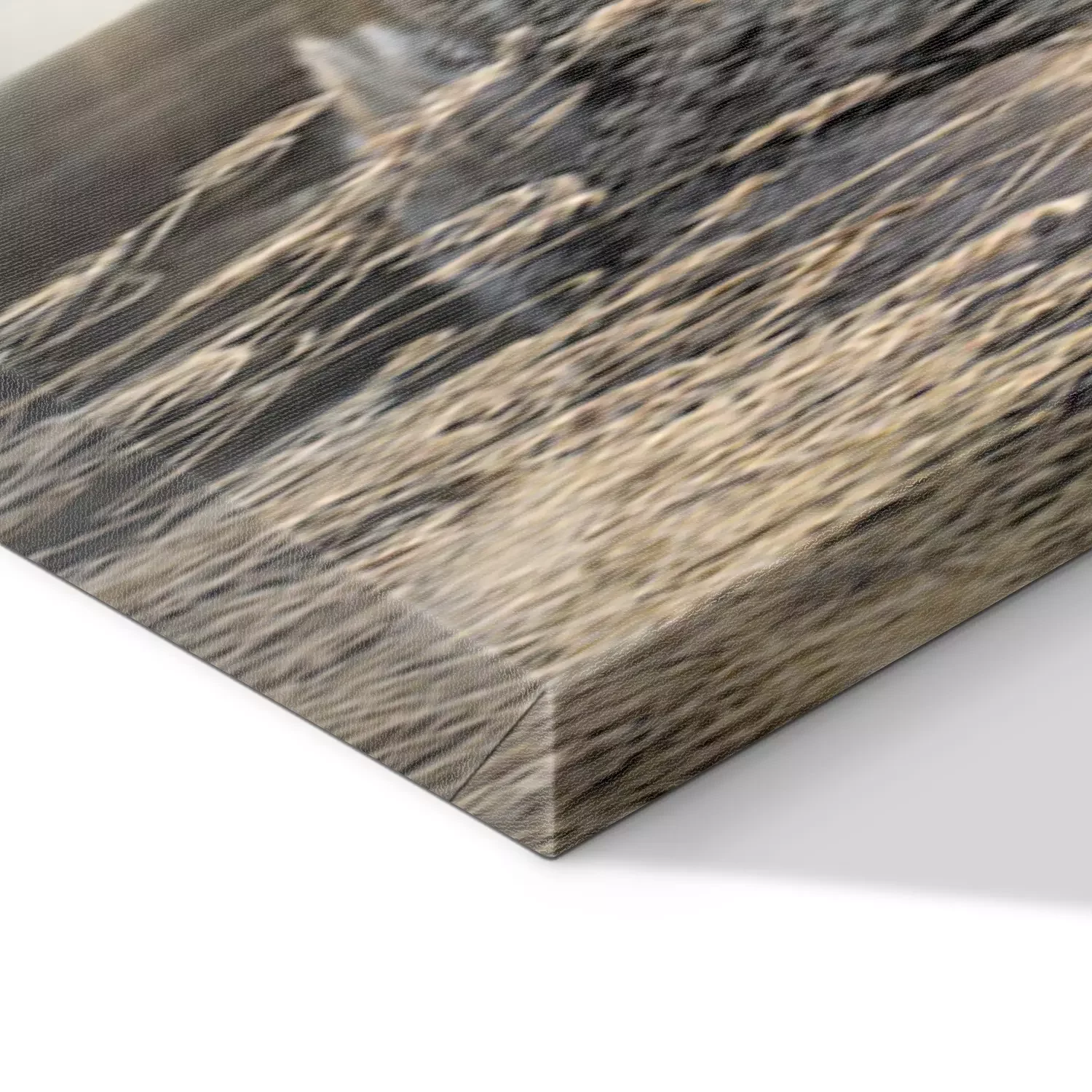 De print wordt aangebracht op hoogwaardig canvas dat op een schildersweefgetouw (spieraam) wordt gespannen. Omdat de print de zijranden bedekt, hoeft het ontwerp niet met een extra kader te worden omlijst. Wij raden ook composities aan die uit meerdere foto's bestaan en zo een coherente compositie vormen.
