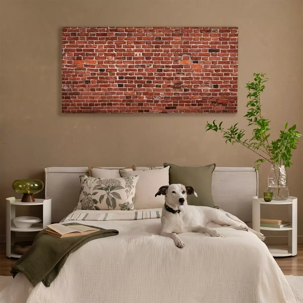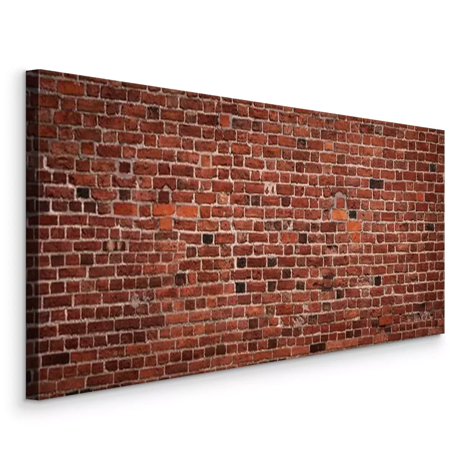 Canvas: Panorama van lege, oude, rode bakstenen muurachtergrond met exemplaarruimte