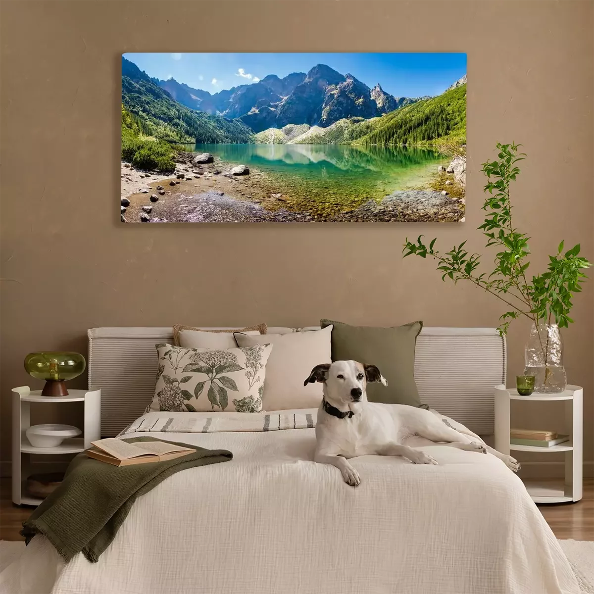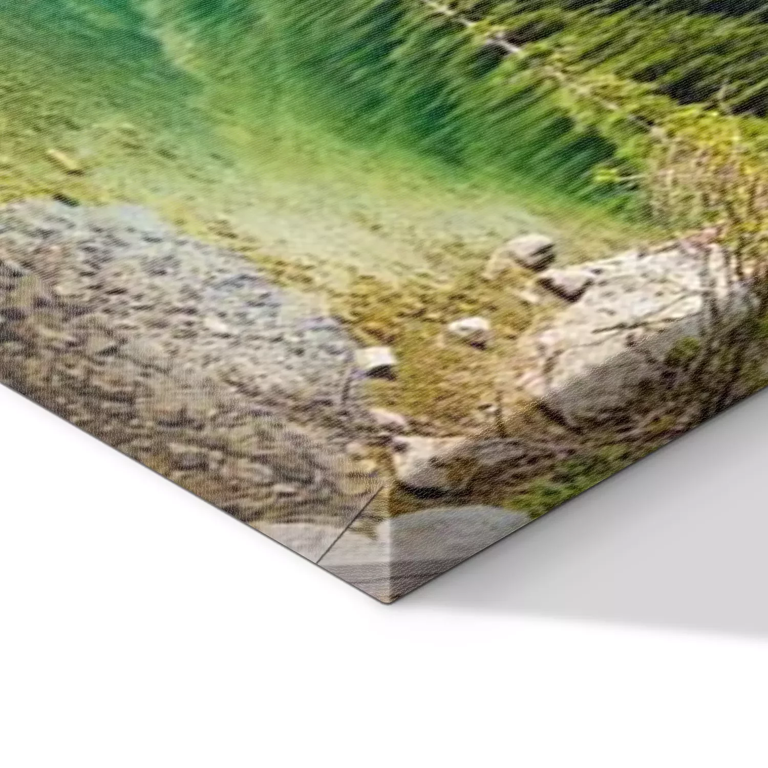 De print wordt aangebracht op hoogwaardig canvas dat op een schildersweefgetouw (spieraam) wordt gespannen. Omdat de print de zijranden bedekt, hoeft het ontwerp niet met een extra kader te worden omlijst. Wij raden ook composities aan die uit meerdere foto's bestaan en zo een coherente compositie vormen.
