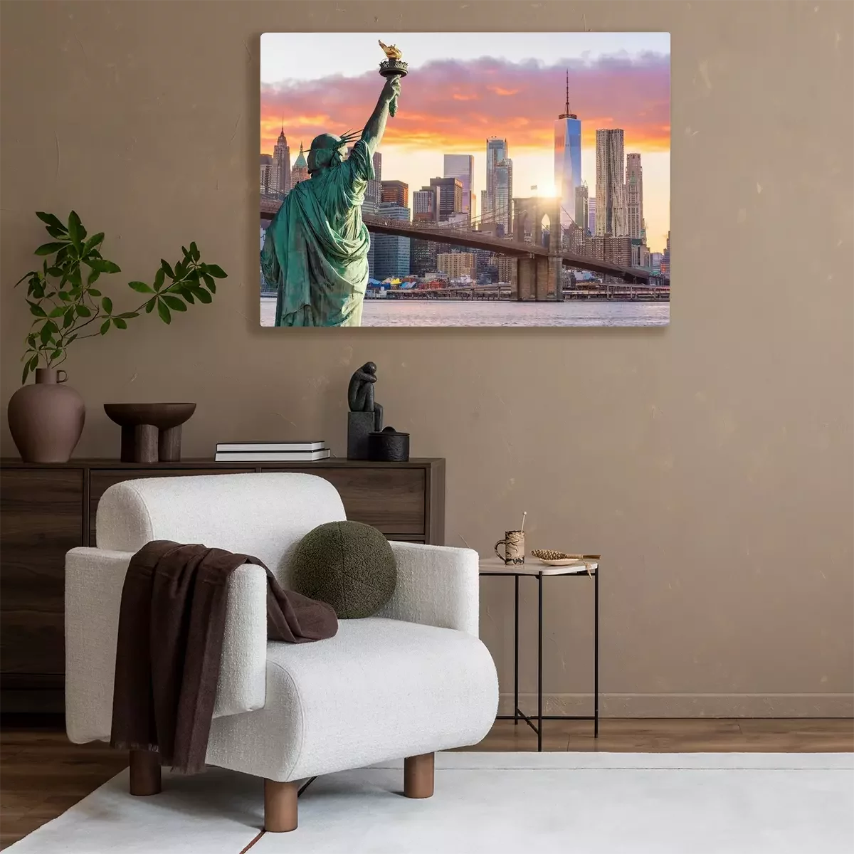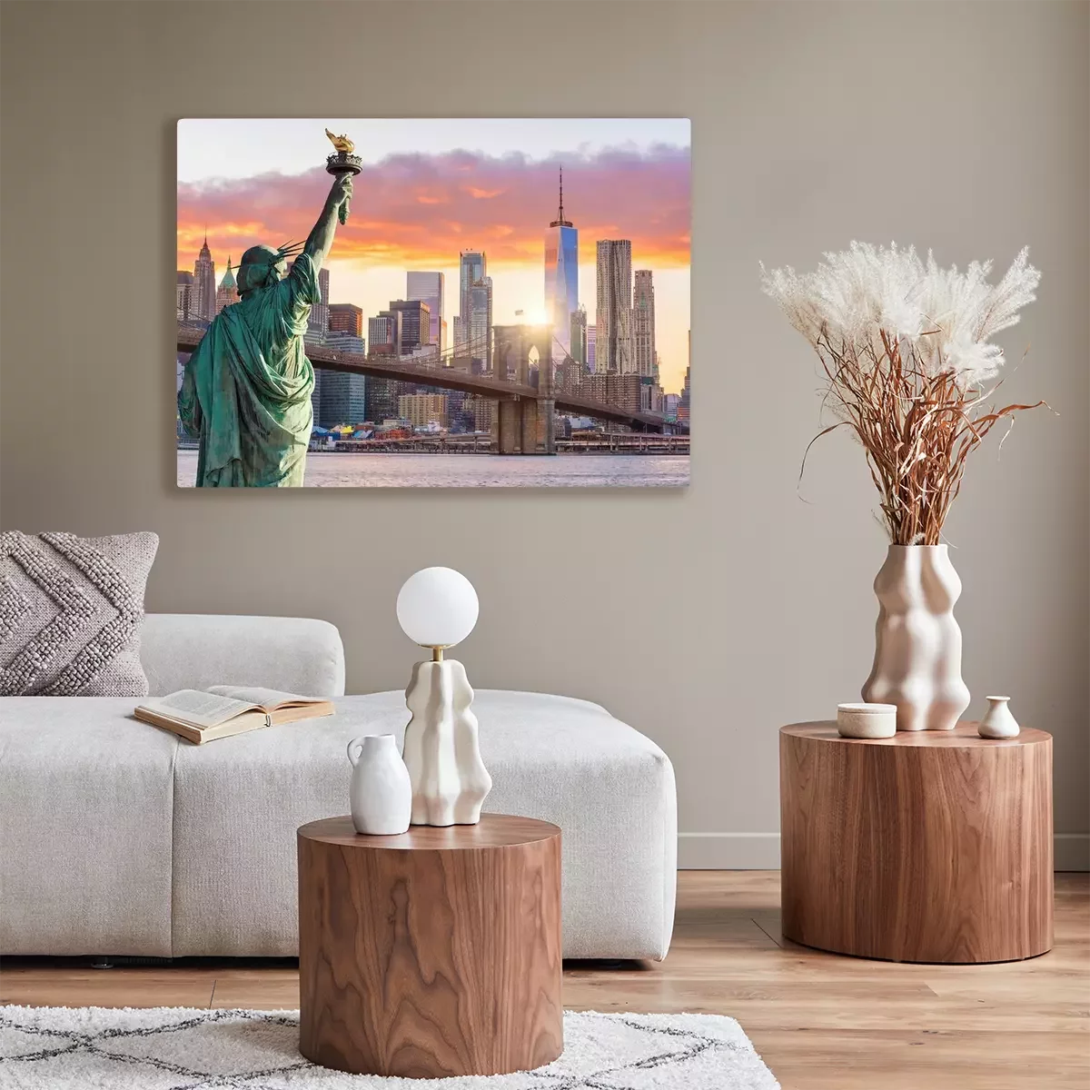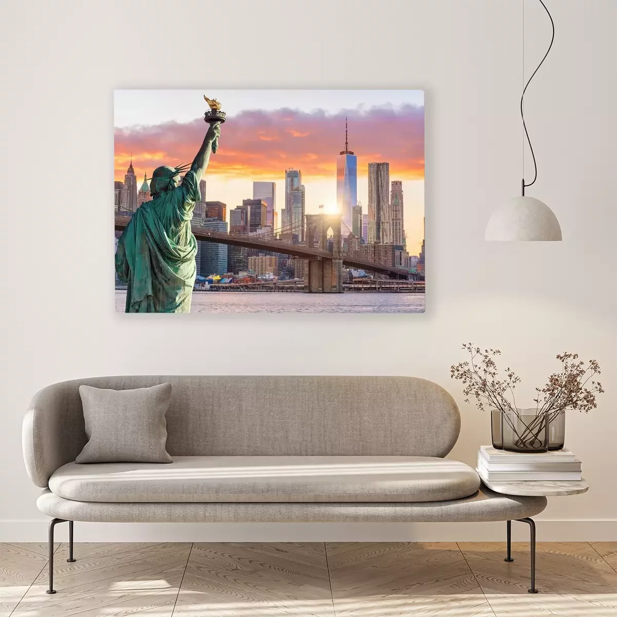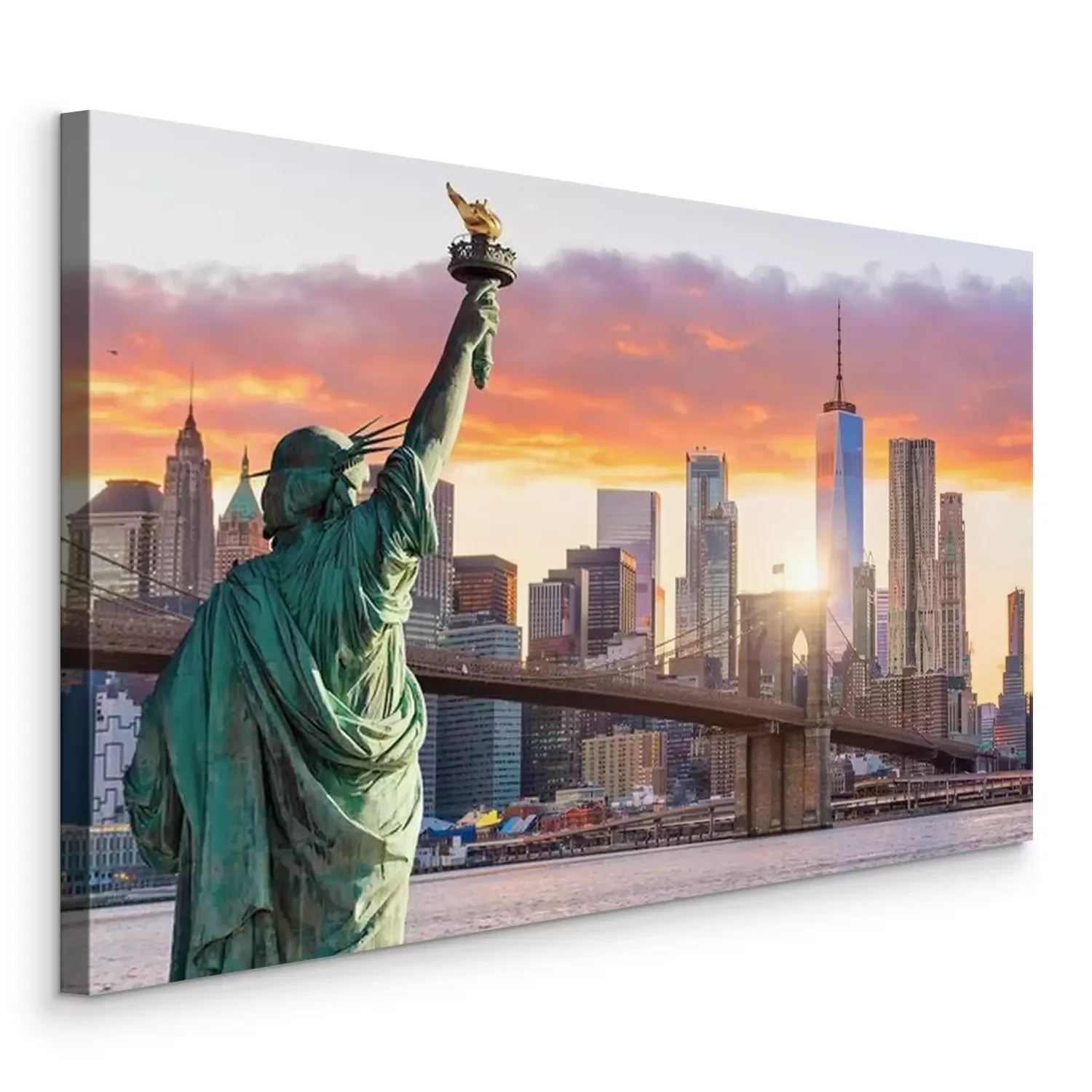 Canvas: Panorama van New York City en het Vrijheidsbeeld